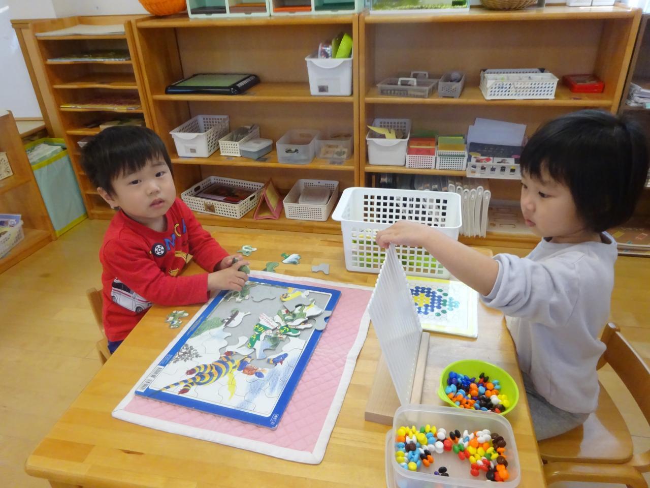 少しずつお部屋の環境にも慣れ、友達と一緒にすごろくや神経衰弱で遊ぶ姿、一人で集中して絵を描く姿など各々に遊びを楽しんでいます😄