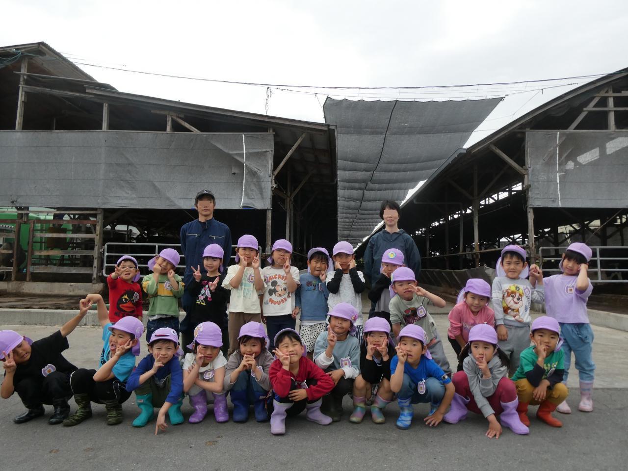 今日は年長児さんみんなで、ヤマギシの牛舎見学に行きました!