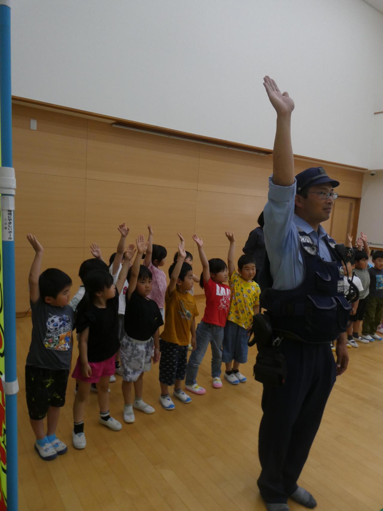というように質問されると「手をあげる!」「車が来てないか見る!」など子どもたちも考えたことを次々と積極的に答えていました😆
