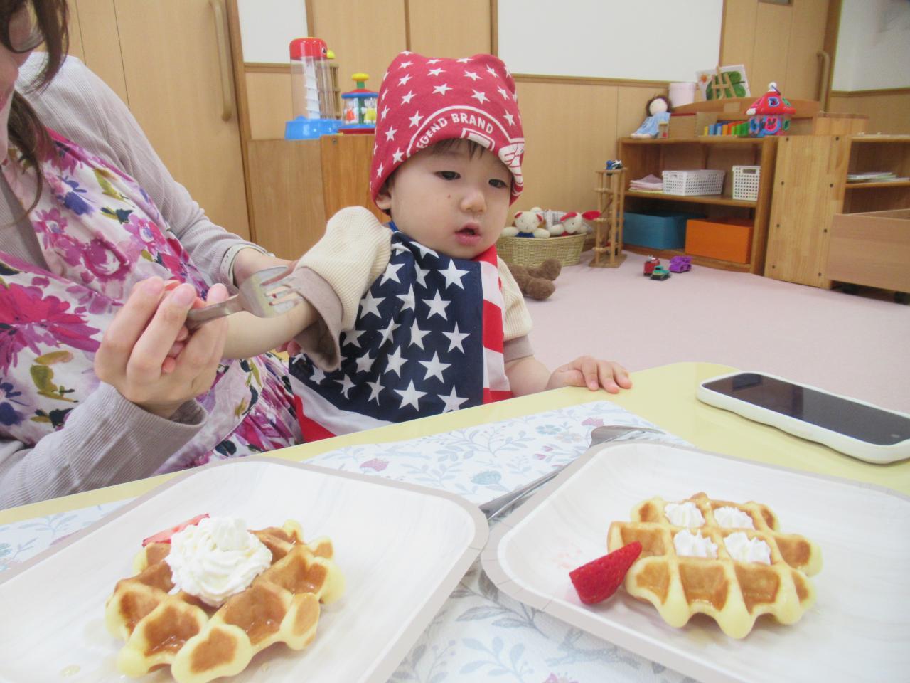 あまいワッフルはみんなペロリと完食😋おいしかったね😄