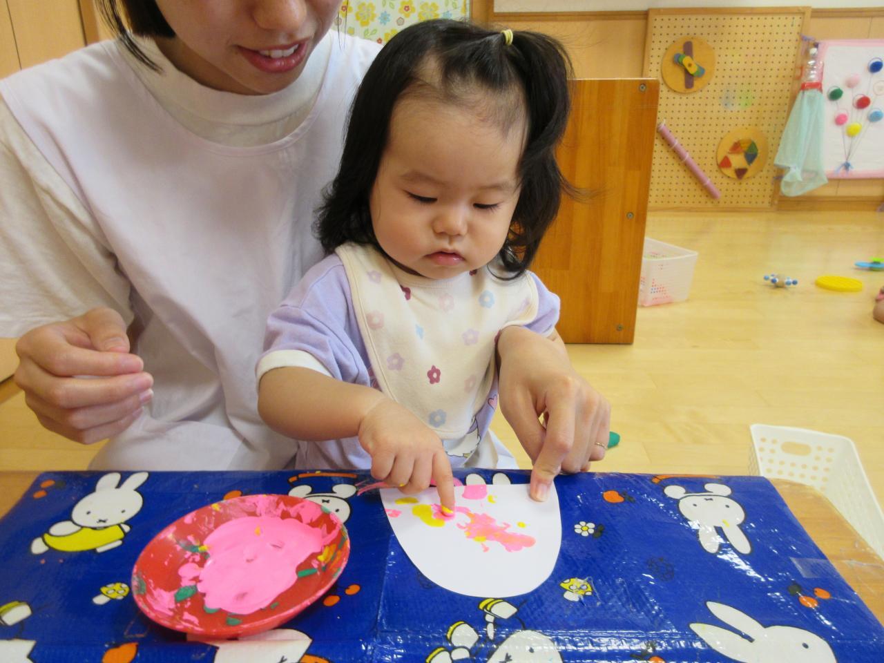 ぺったんするよ!と見本を見せると同じようにまねをしてぺったん!とする子もいました!