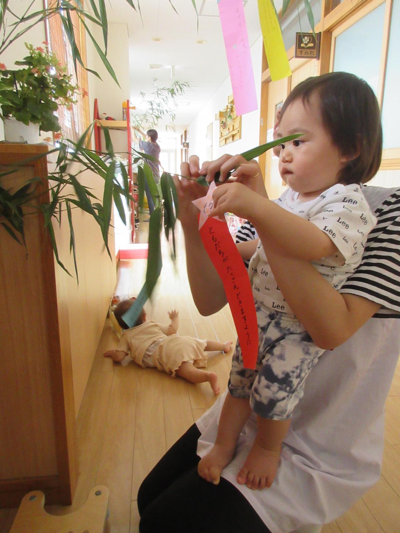 みんなが書いてきてくれた短冊を笹の葉に飾りました!