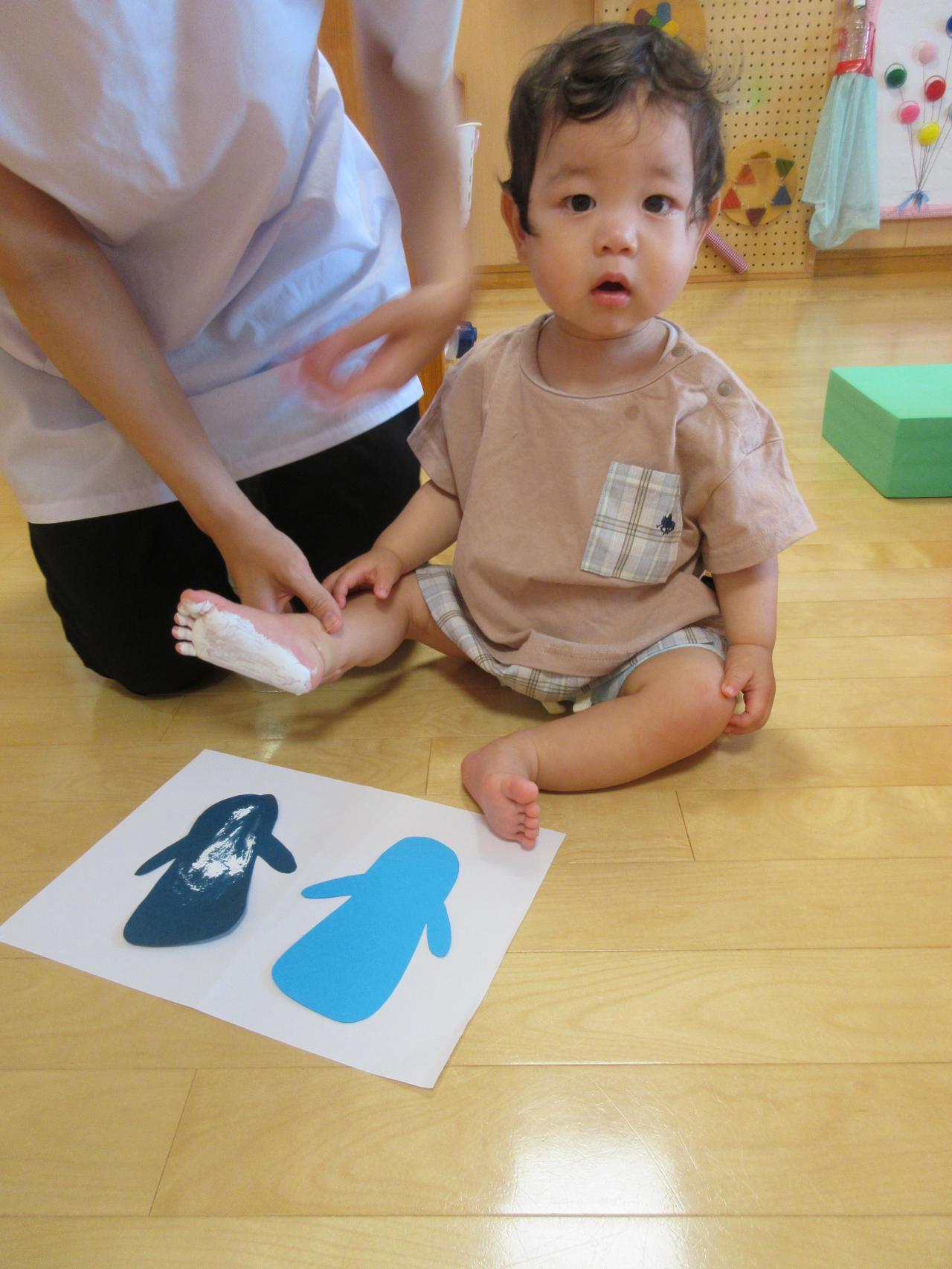 表面は子ども達の足型を取ってペンギンに🐧👣