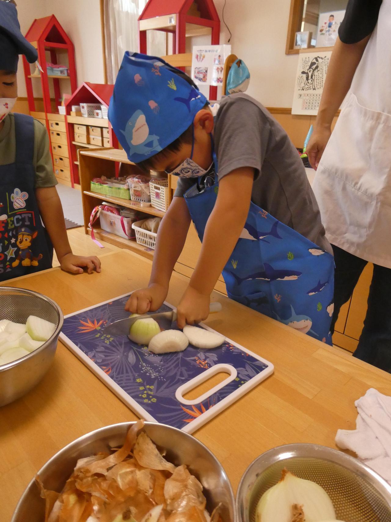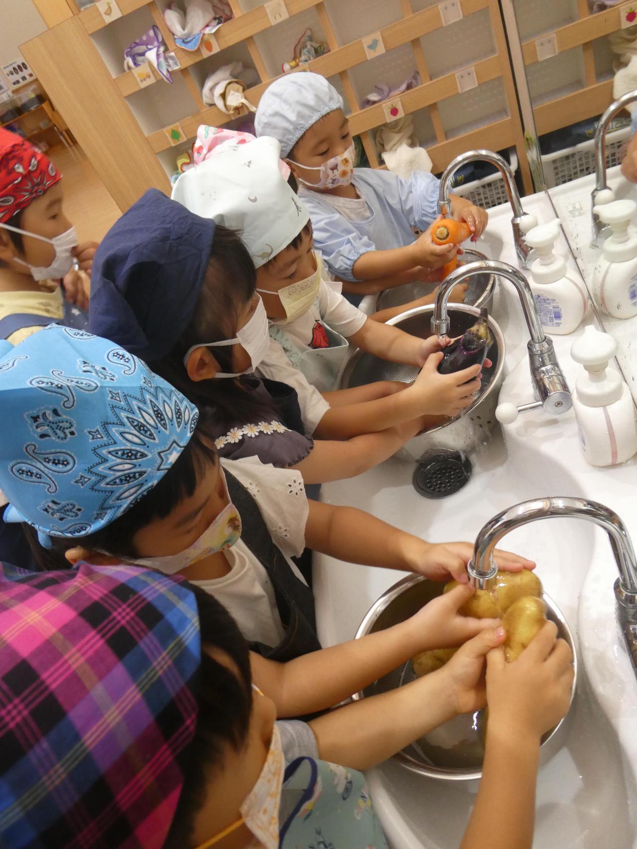 年少さんは・・・野菜をきれいに洗う💧 玉ねぎの皮をむく💪