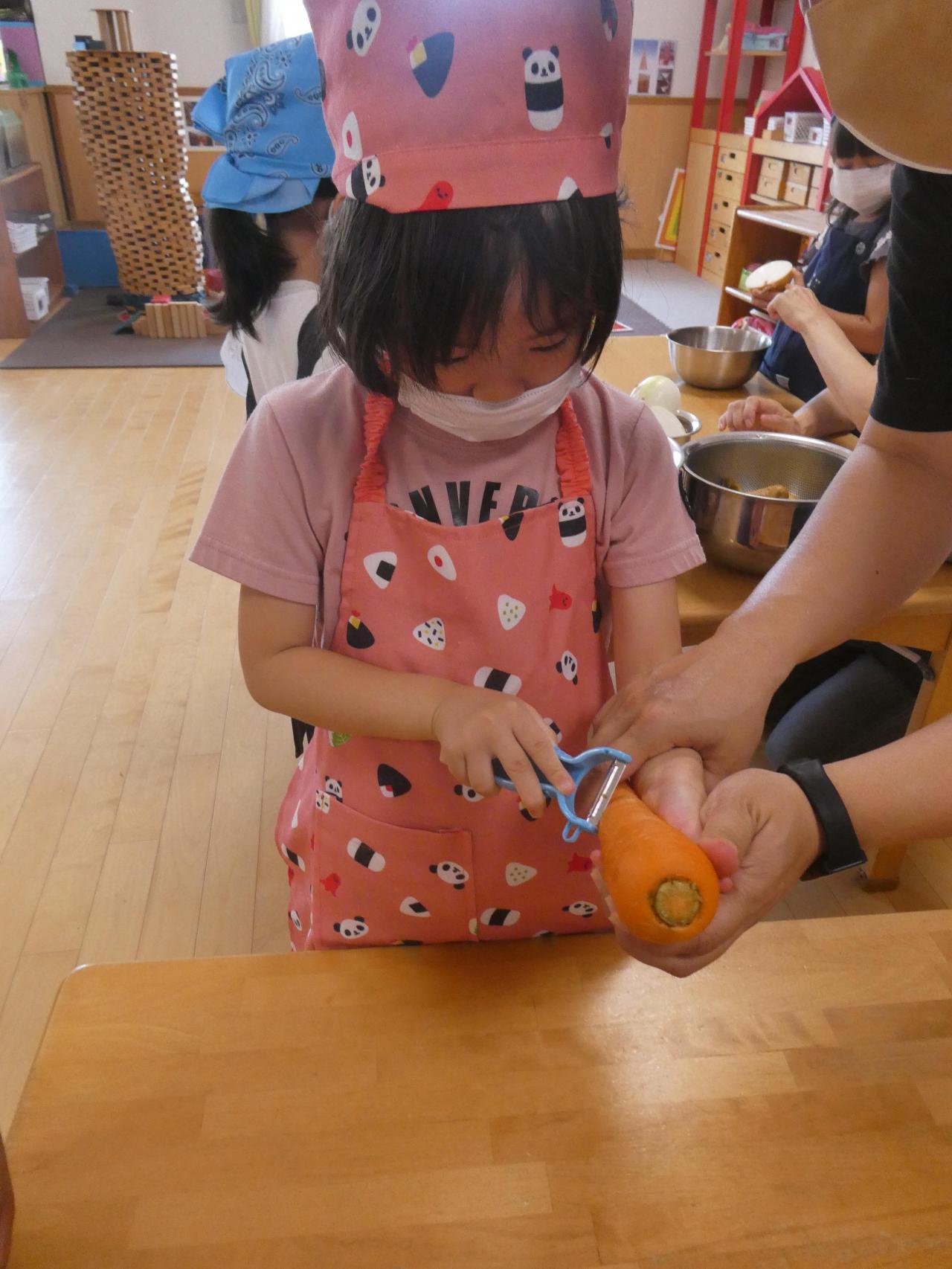 年中さんは・・・野菜の皮をピーラーでむく✨