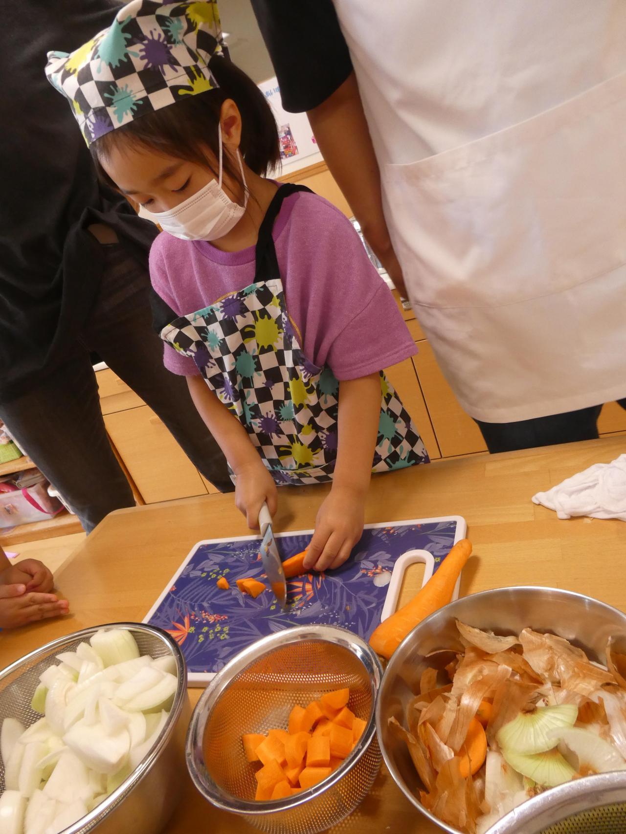 年長さんは・・・野菜を食べやすい大きさに切る🙆