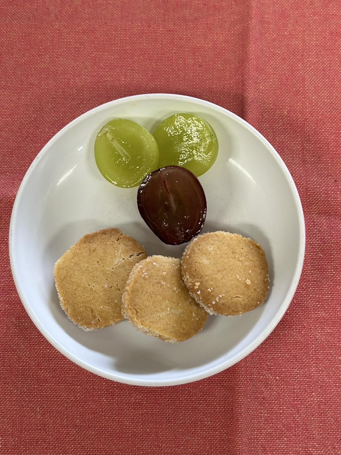 幼児さんが夏の食材の絵を描いた時に使ったぶどう🍇をおやつの時間に幼児のみ提供しました。