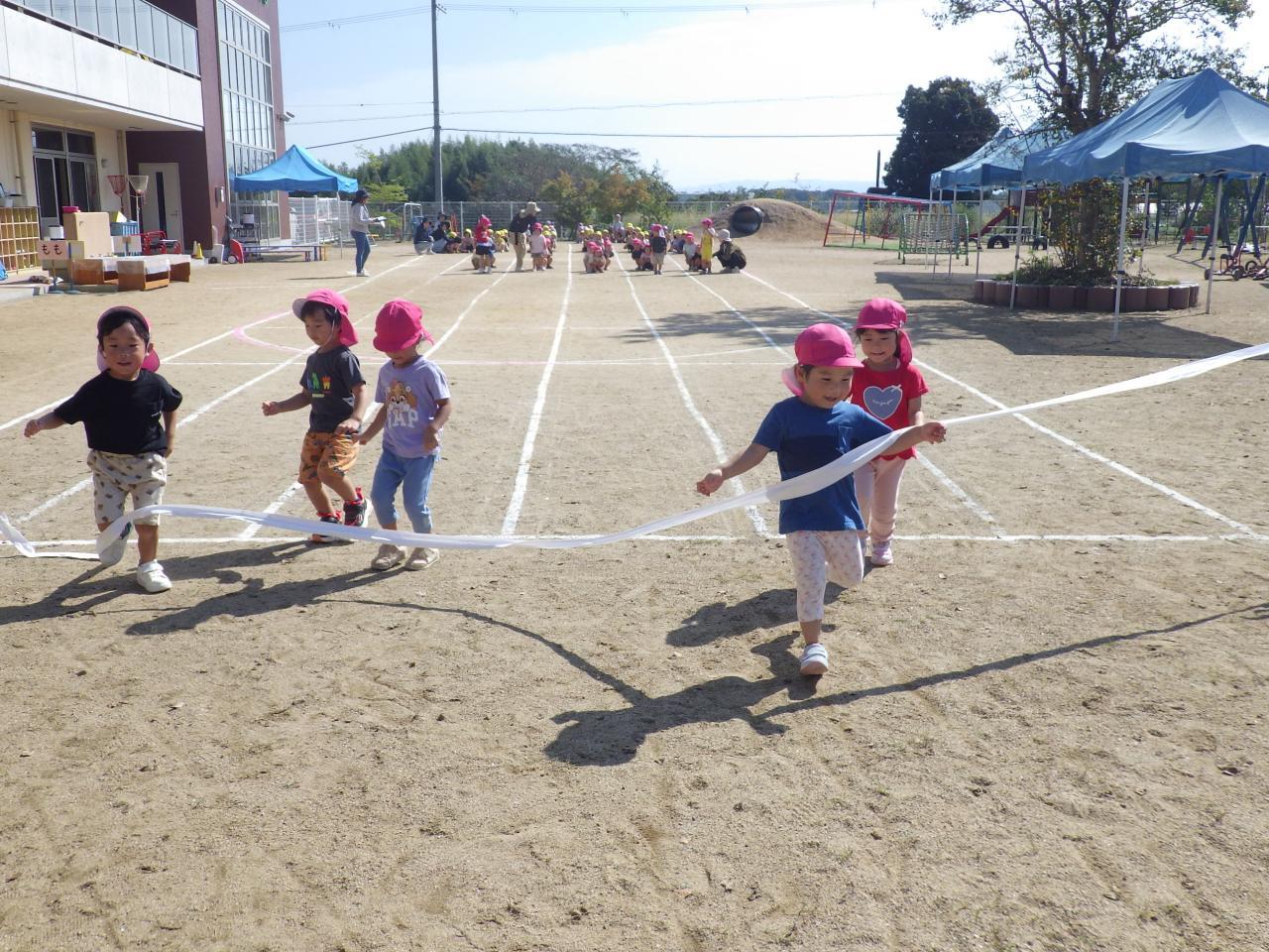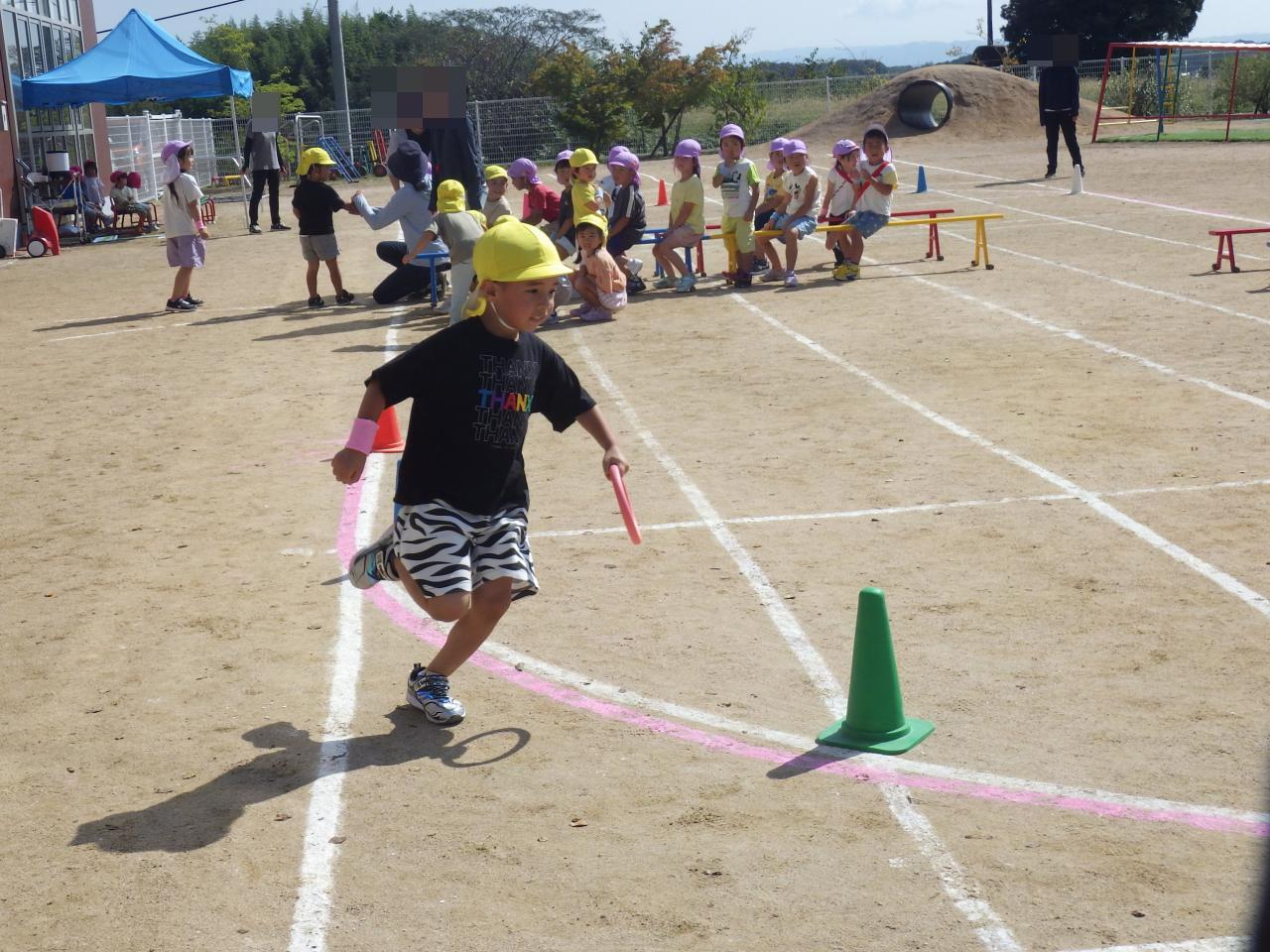 その他、体操やかけっこ、年長年中合同のリレー、年長さんは日々の練習の成果を発表する“オリンピック”、年中さんの大玉転がし等々、楽しそうに頑張っている子ども達です😄