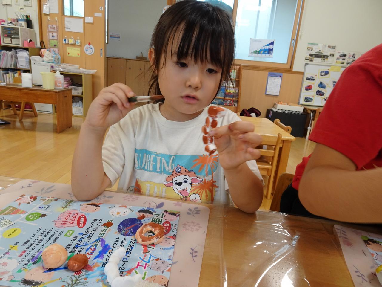 今年度初めての試みである、紙粘土で作ったドーナツが子ども達のお気に入り😊