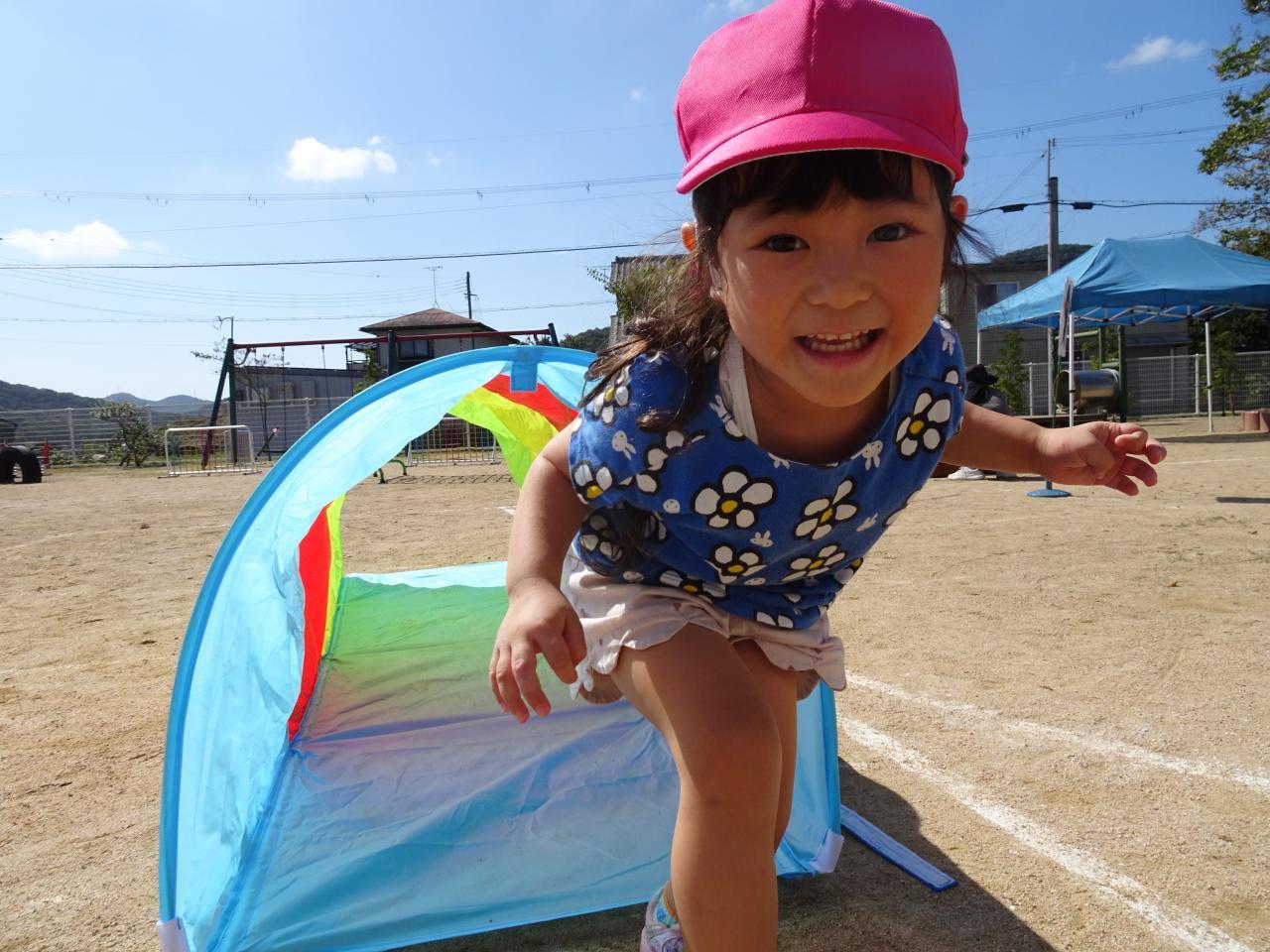 年少さんも年長さんのバルーンの下を通り抜ける、通称“トンネル”を走り抜ける姿は可愛いですよ✨