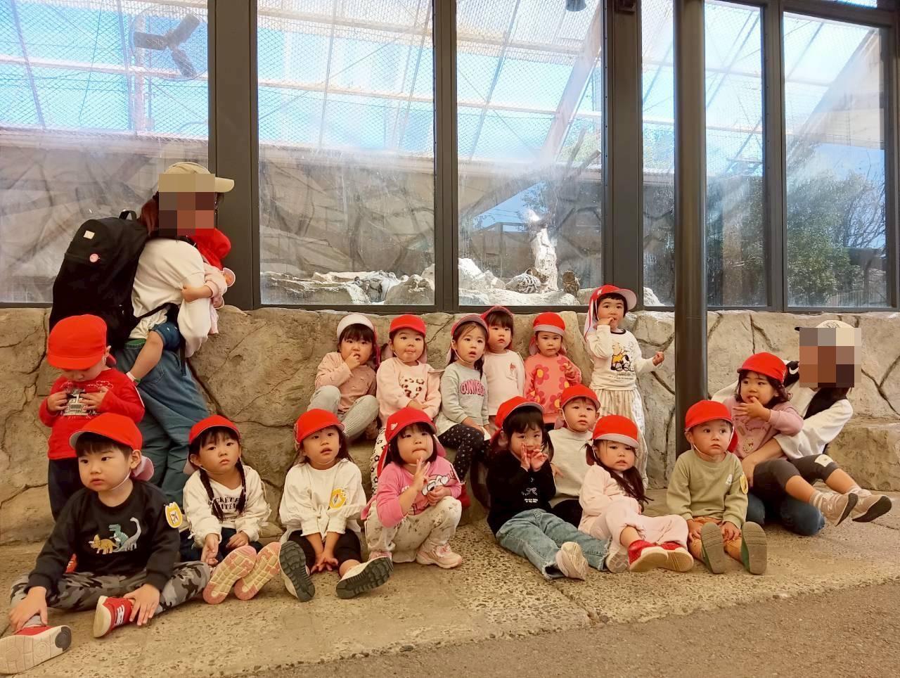 出発前から「今日は動物行くんやで~!」「お弁当食べるんやで」と張り切った様子の子どもたちでした😄