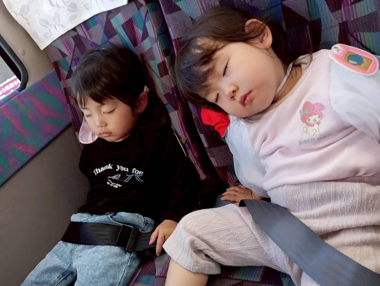 いろんな動物がとっても近くで見れて迫力満点で楽しかったね😄いっぱい歩いて帰りのバスではスヤスヤと眠りについていました😴