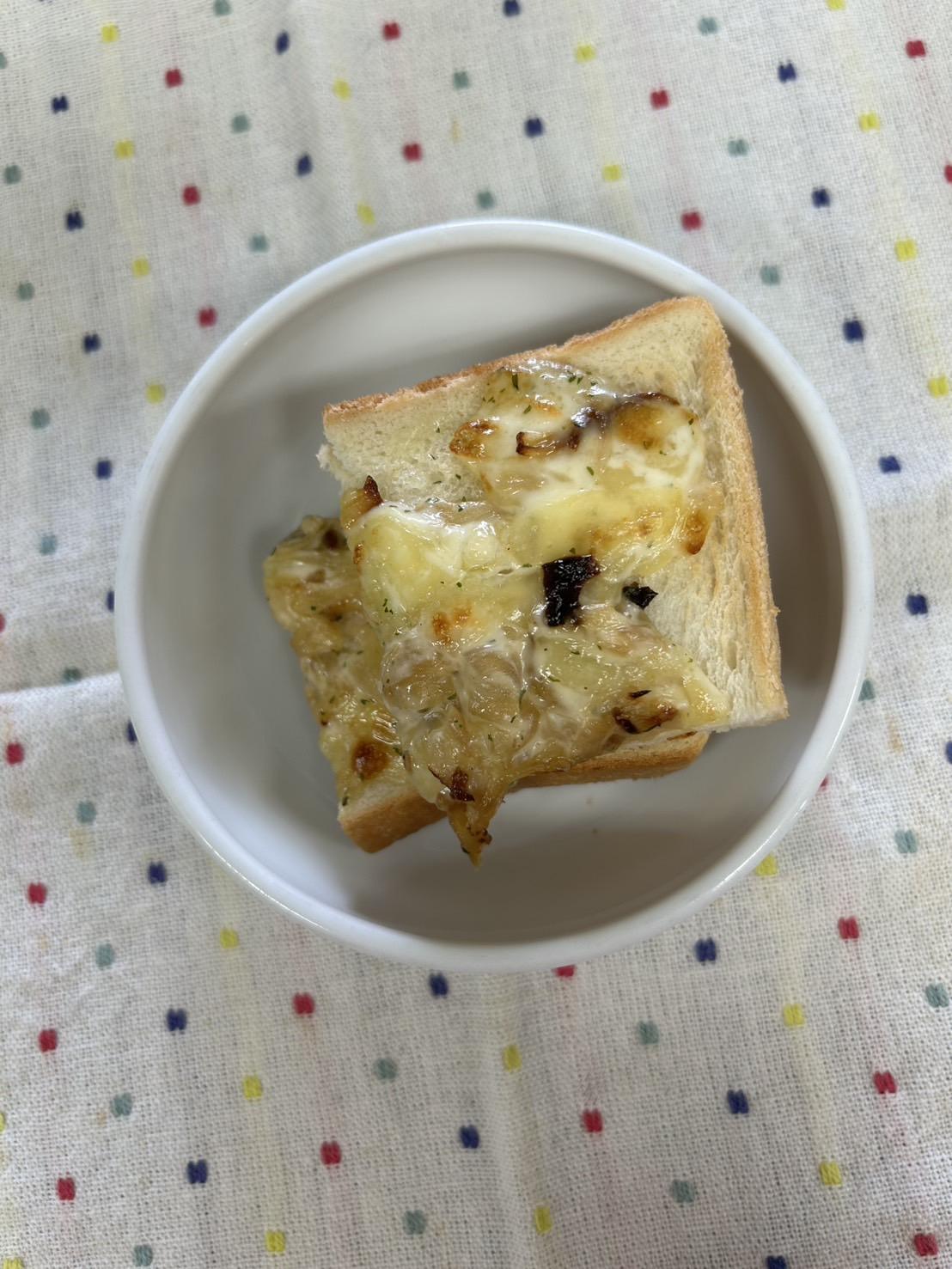炒めた玉ねぎをマヨネーズと合わせ、チーズとともに焼いています。