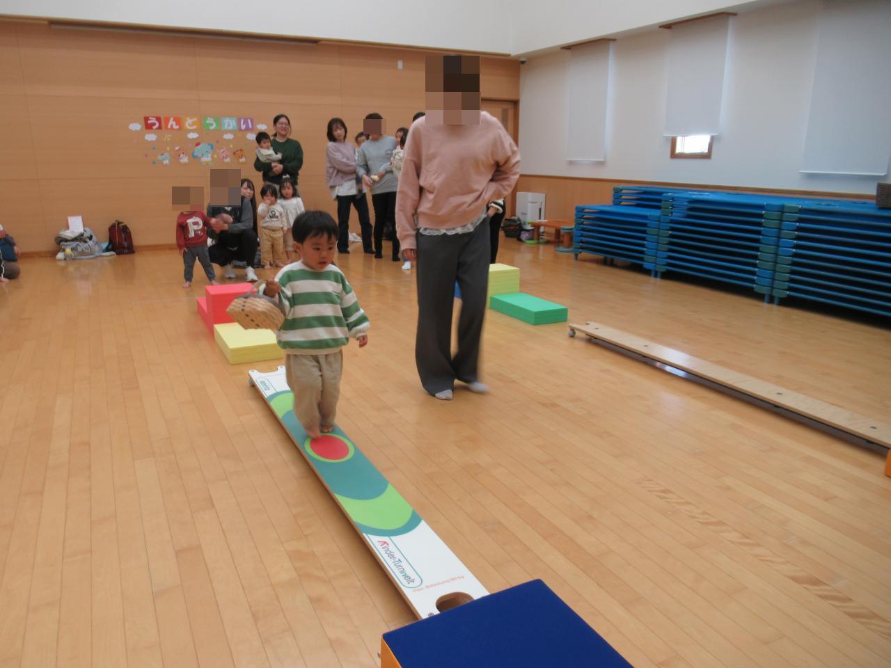 ミニ運動会には11組の親子が参加されました🤩初めての運動会にドキドキしているお友達もいましたが、玉入れや親子競技、サーキットなど、いろんな運動遊びを最後までみんな頑張ることができました😆