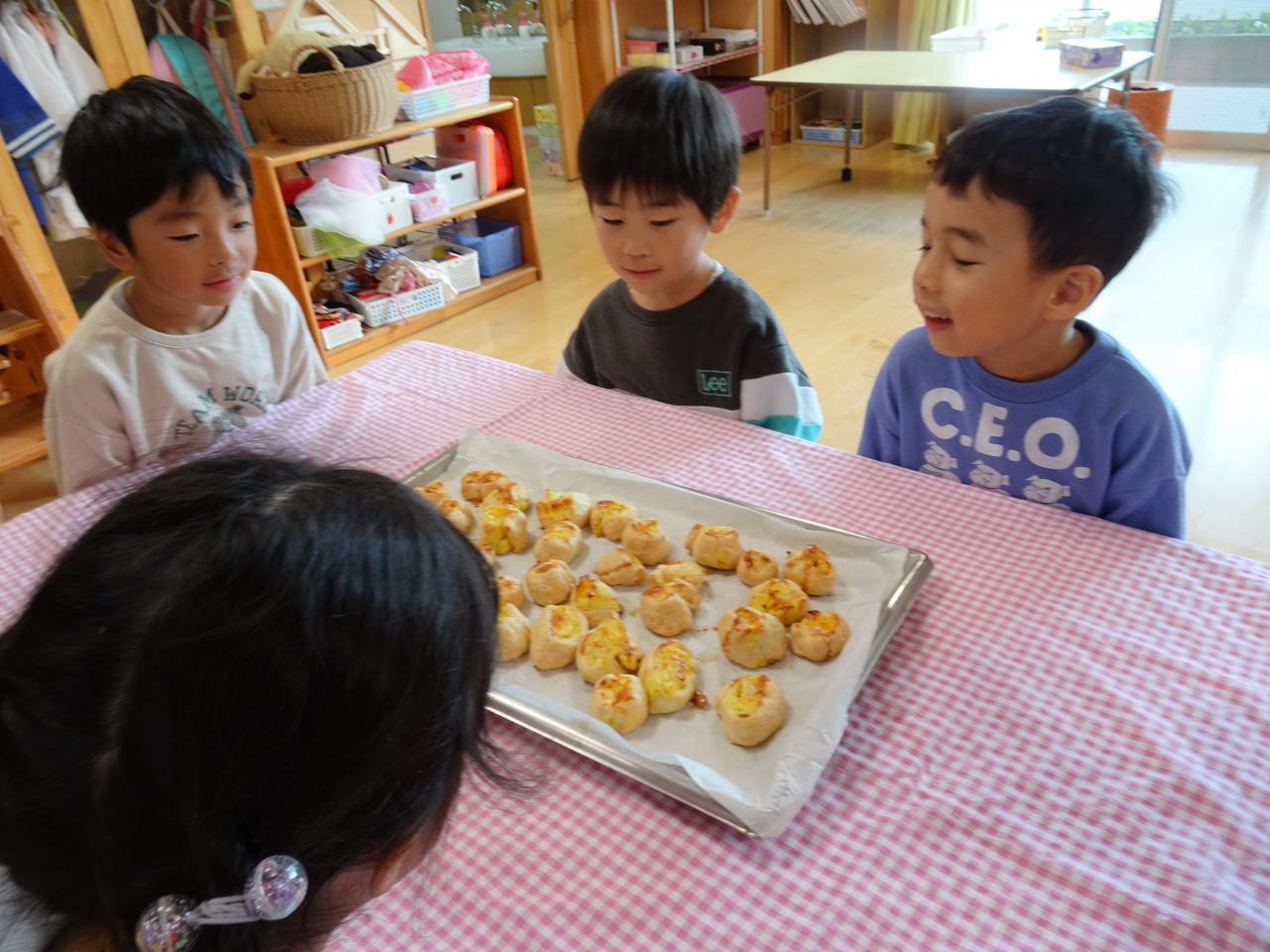 11月11日(火)にみんなが楽しみにしていたさつまいもクッキングをしました😄子ども園に登園してからまず子ども達の第一声は「エプロンちゃんと持ってきたで✨」と嬉しそうな表情での報告。ウキウキしている気持ちがすごく伝わってきました。