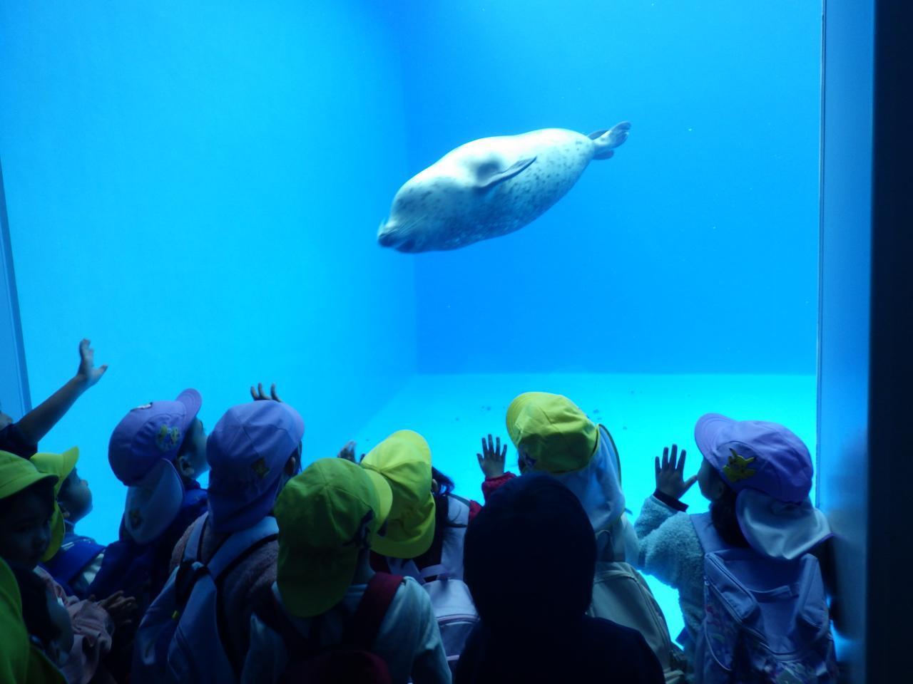 泳いでいる魚や近づいてくるアザラシを見て「お顔がかわいい❤」や「こっちこっち!」と思わず話しかける子ども達の姿がとても微笑ましかったです🥰