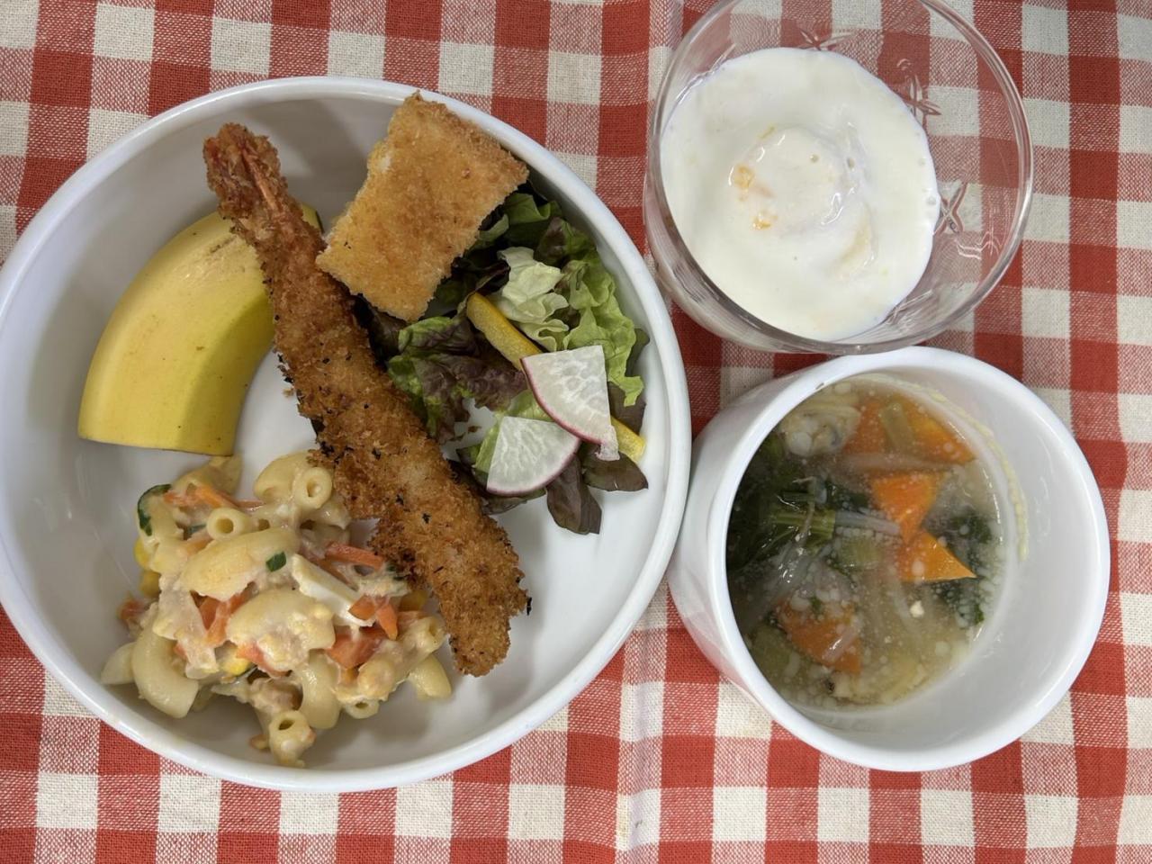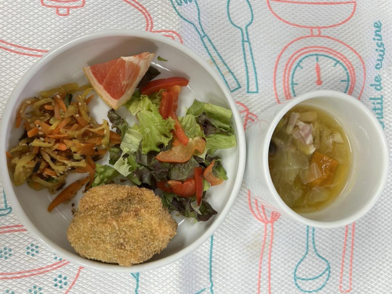 「コロッケ」は、じゃが芋と収穫したさつま芋を混ぜて作っています。