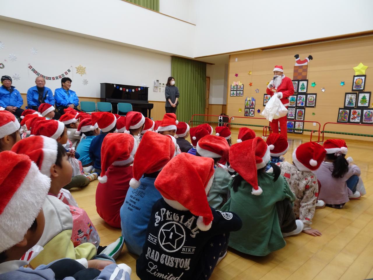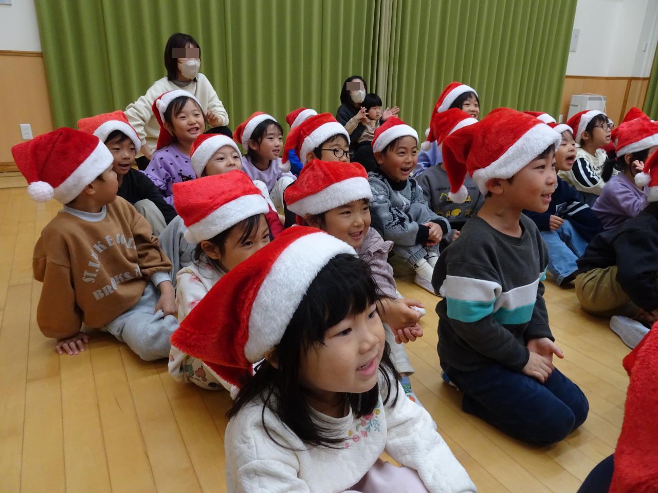 こども園にサンタさんが来ると、園内にクリスマスのBGMが聞こえてきました🎵