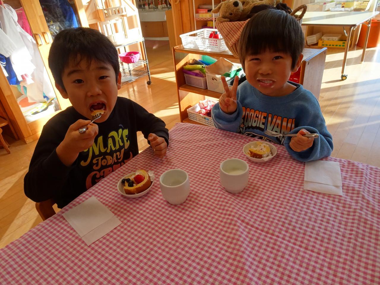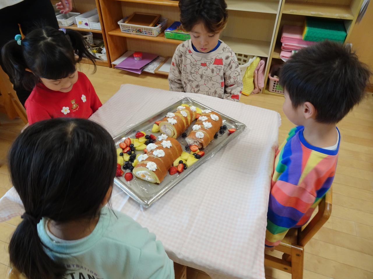そして、この日のおやつは、ロールケーキにフルーツ添え🎂