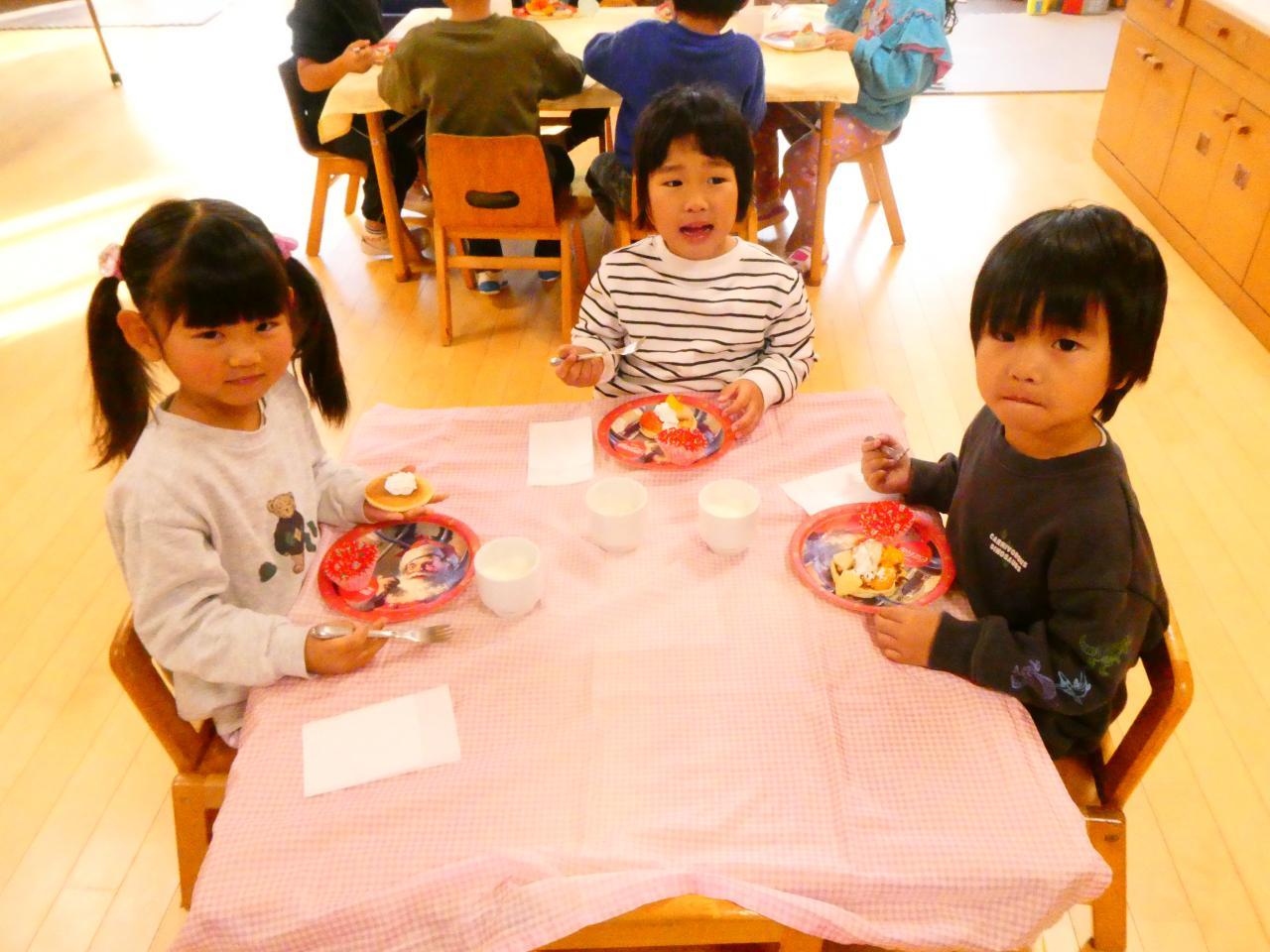 おいしそうにパンケーキを食べる子ども達でした💕