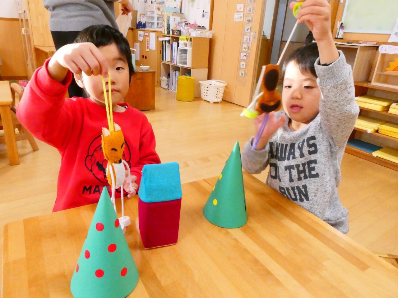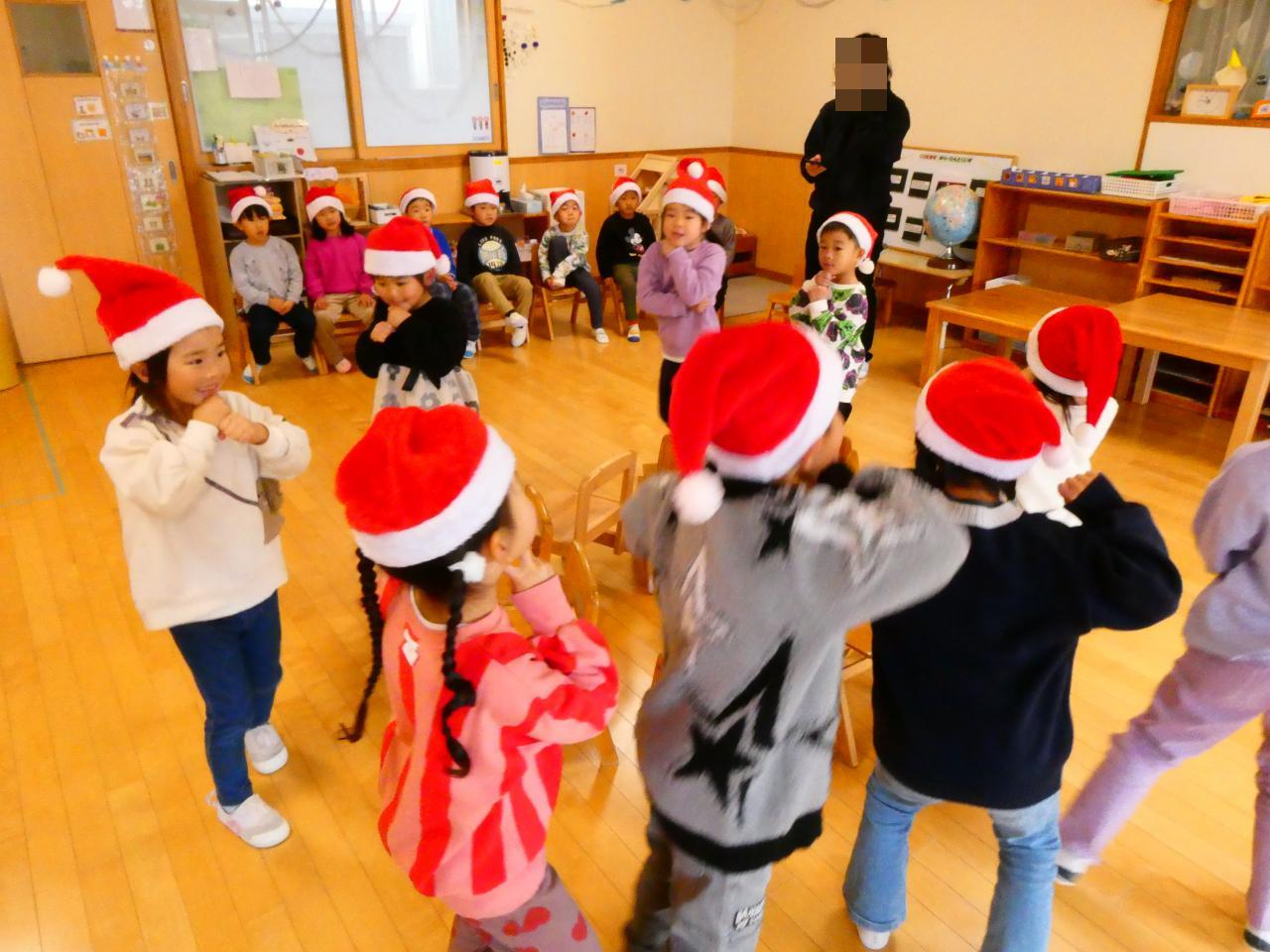 クリスマス会は二部制で、まずは遊戯室に集まってゲームをしたりパネルシアターを見たりしました🎅