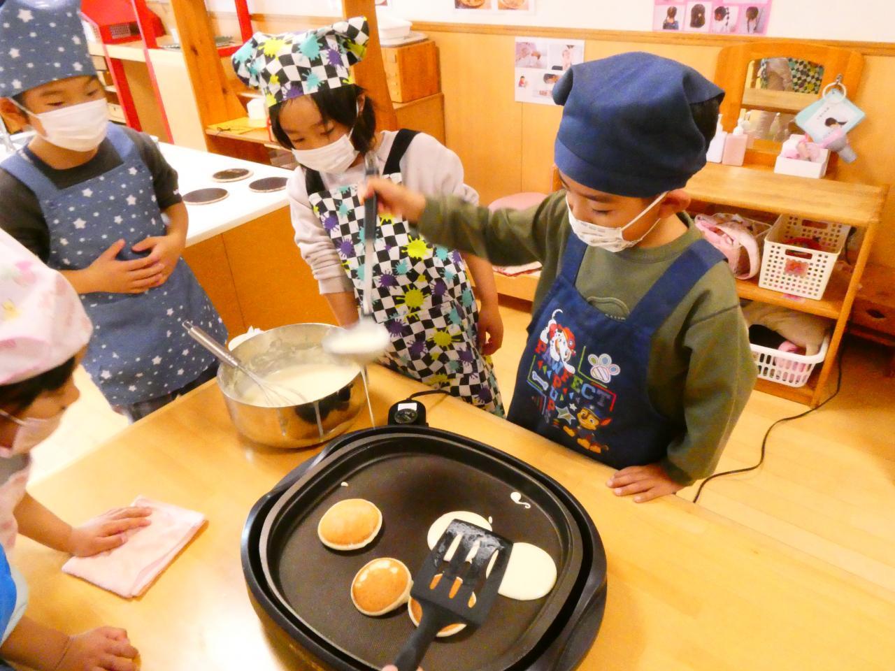 今年はカップケーキからパンケーキに変わり、生地作りだけでなく焼く工程まで頑張りました💪