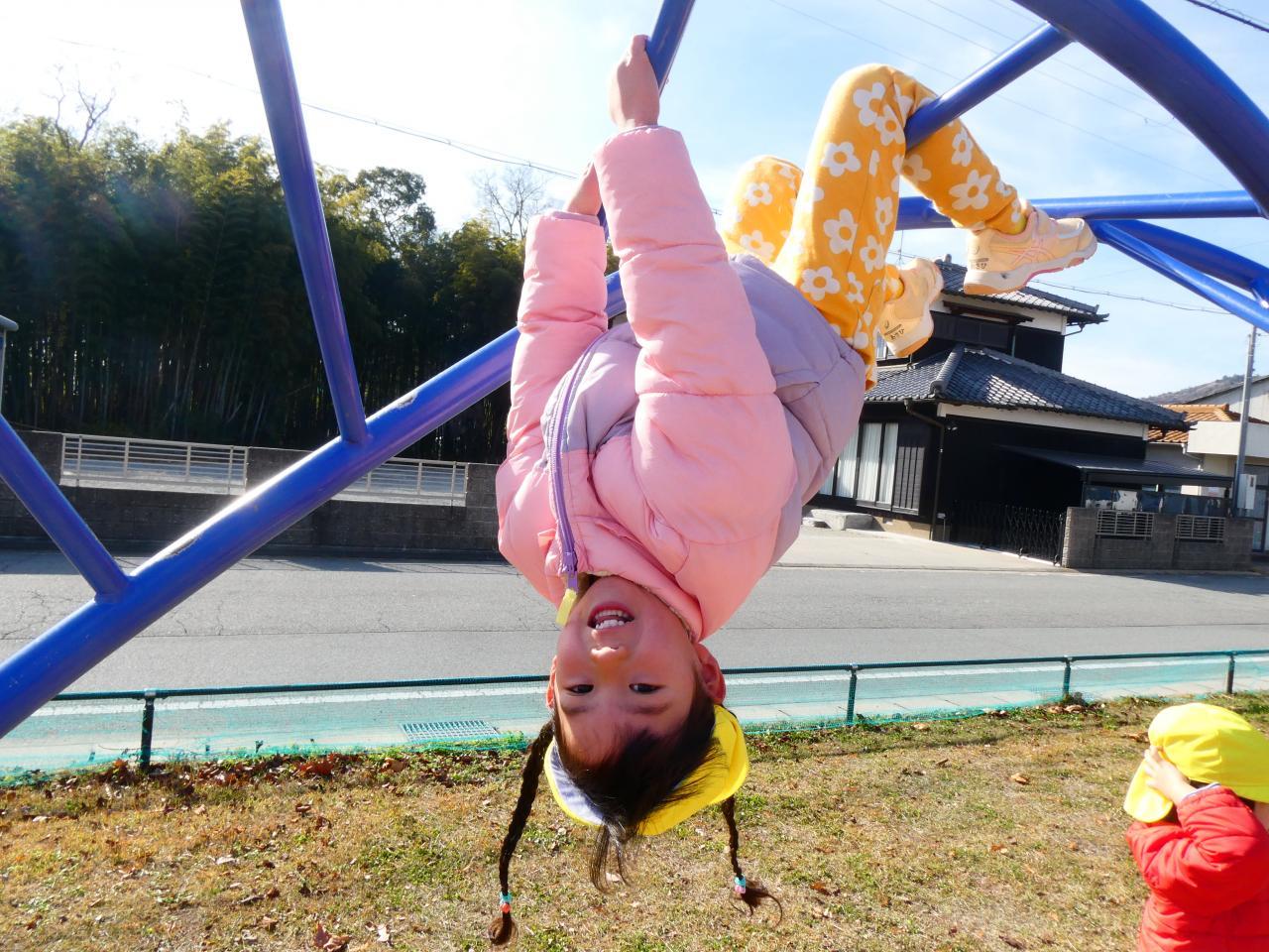 冷たい風が吹く中でも、戸外に出て思い切り走ったり登ったり・・・🏃