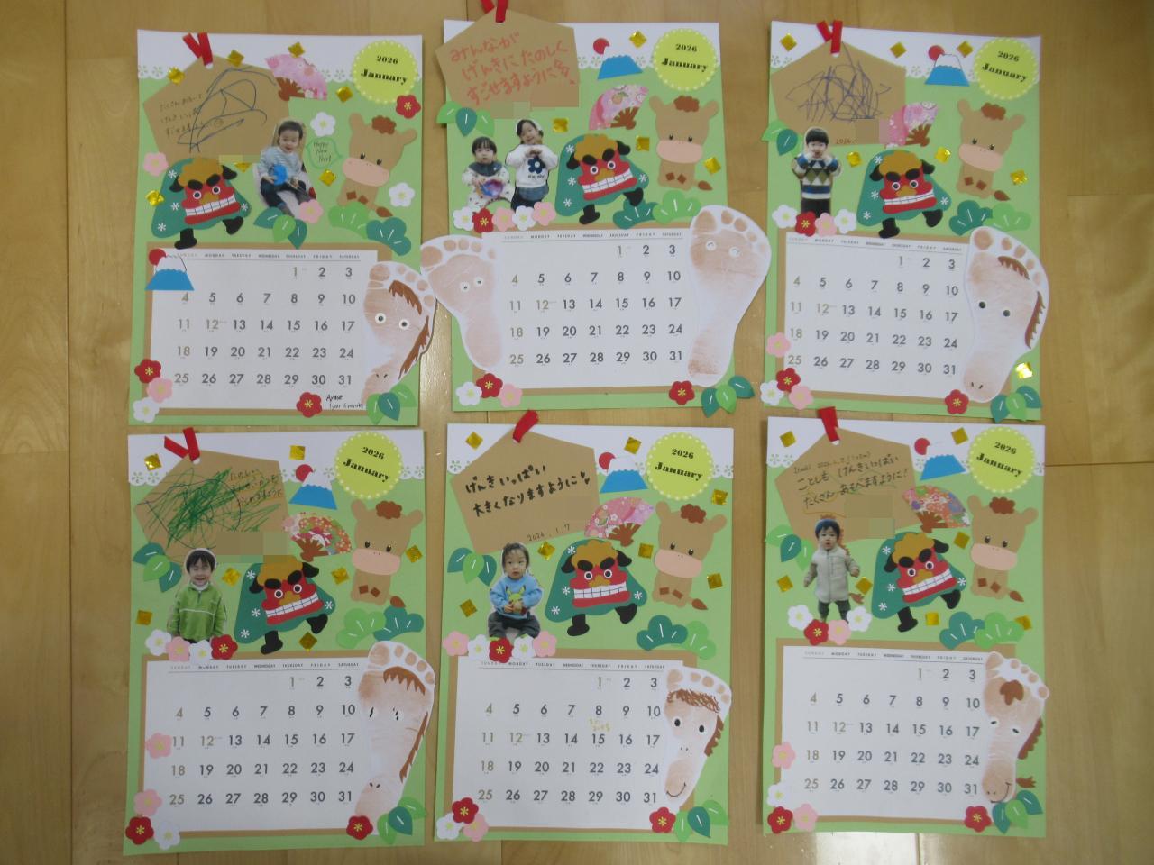 足型つきのカレンダーづくり✨今月もたくさんの親子が参加されました😆今月の足型アートは「馬🐴」✨みんな上手に足型ペッタンできましたよ😄💯