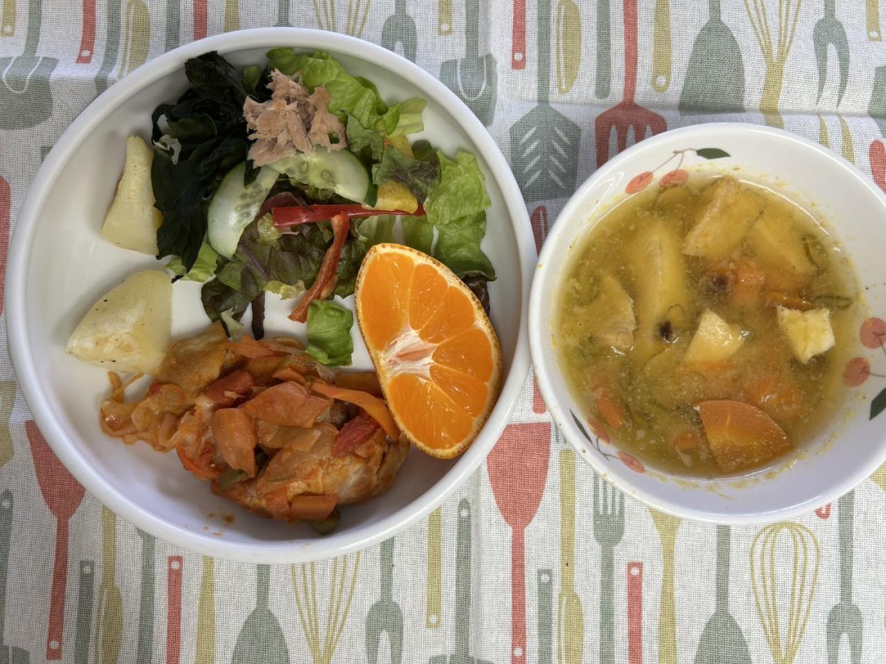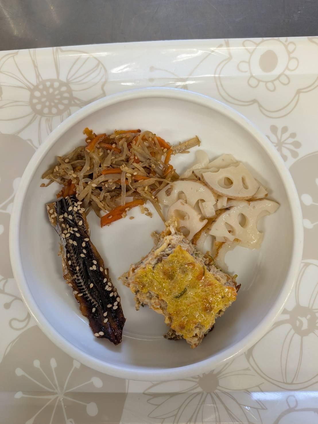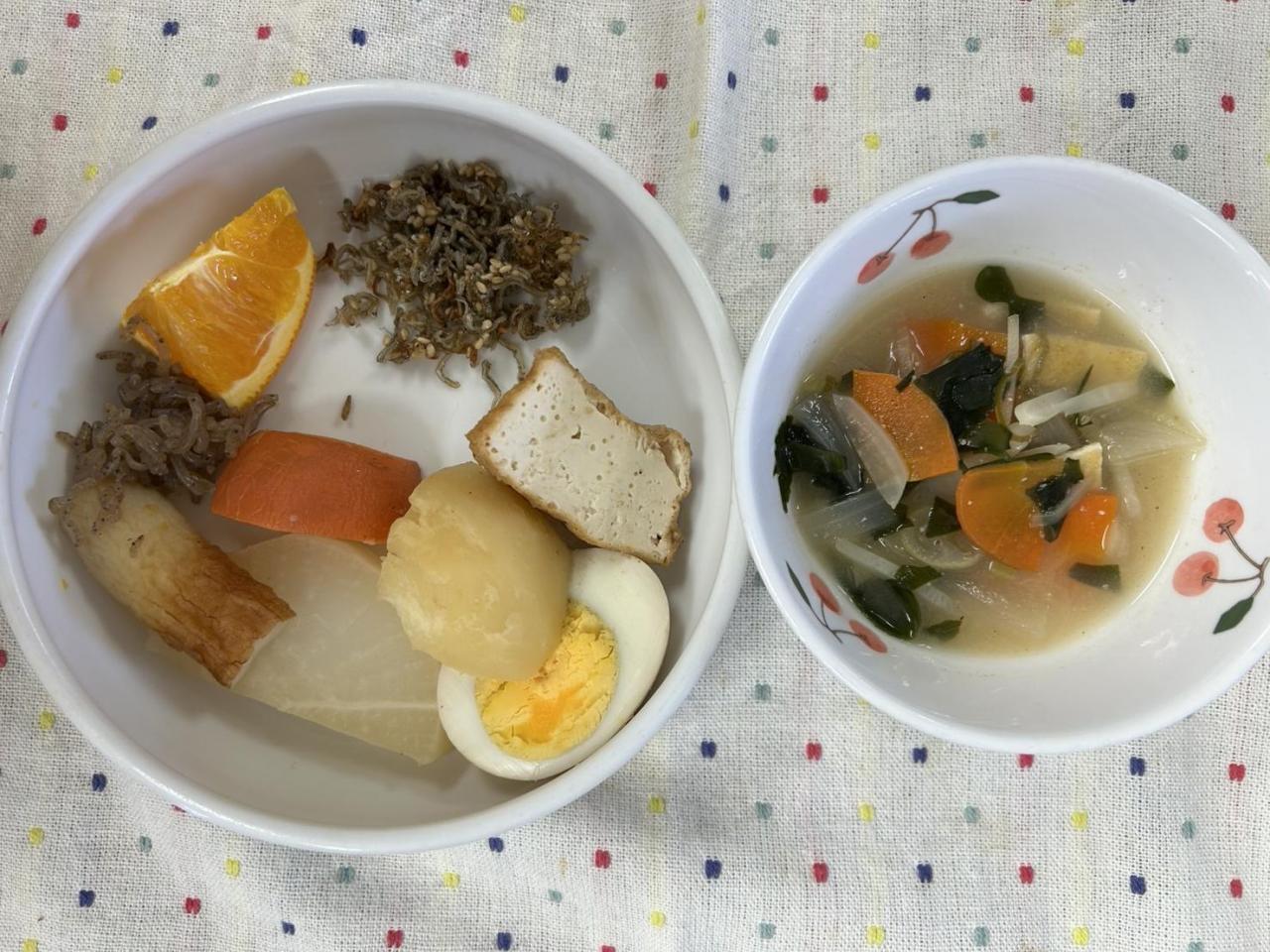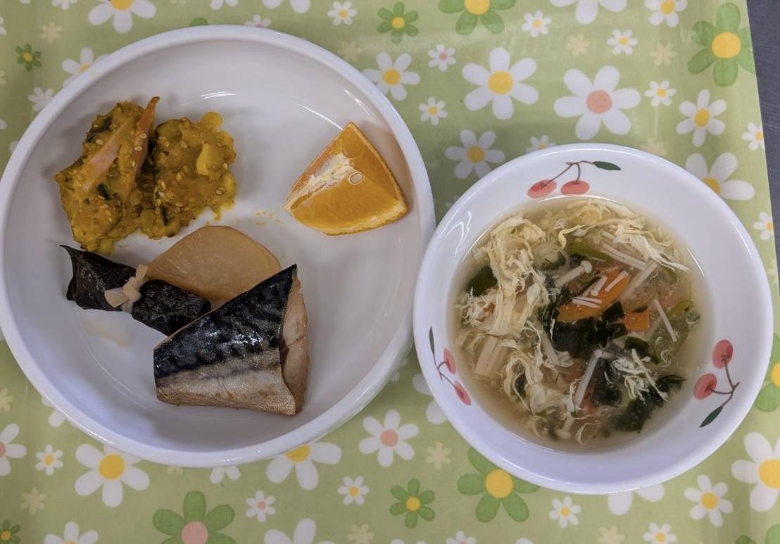 魚に添えている大根は、年長さんが園庭で育てて収穫したものです。