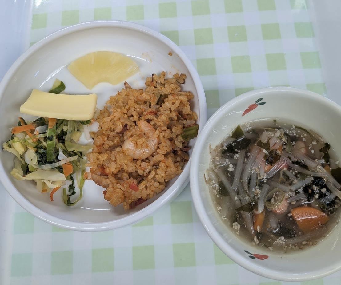 7日はおやつの時間に「七草粥」を食べました。幼児クラスでは、実際に七草に触れる体験も行いました。