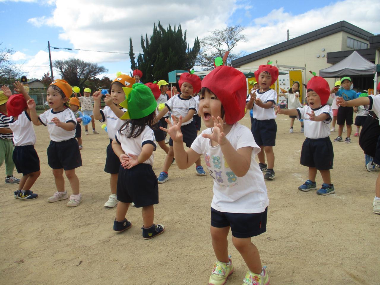 次の日は、「そうさ100%勇気~♬」「イェイ・イェイ・イェイ🎶」と、4・5歳児さんのダンス曲を大合唱でした(笑)」・・・すみれ組より