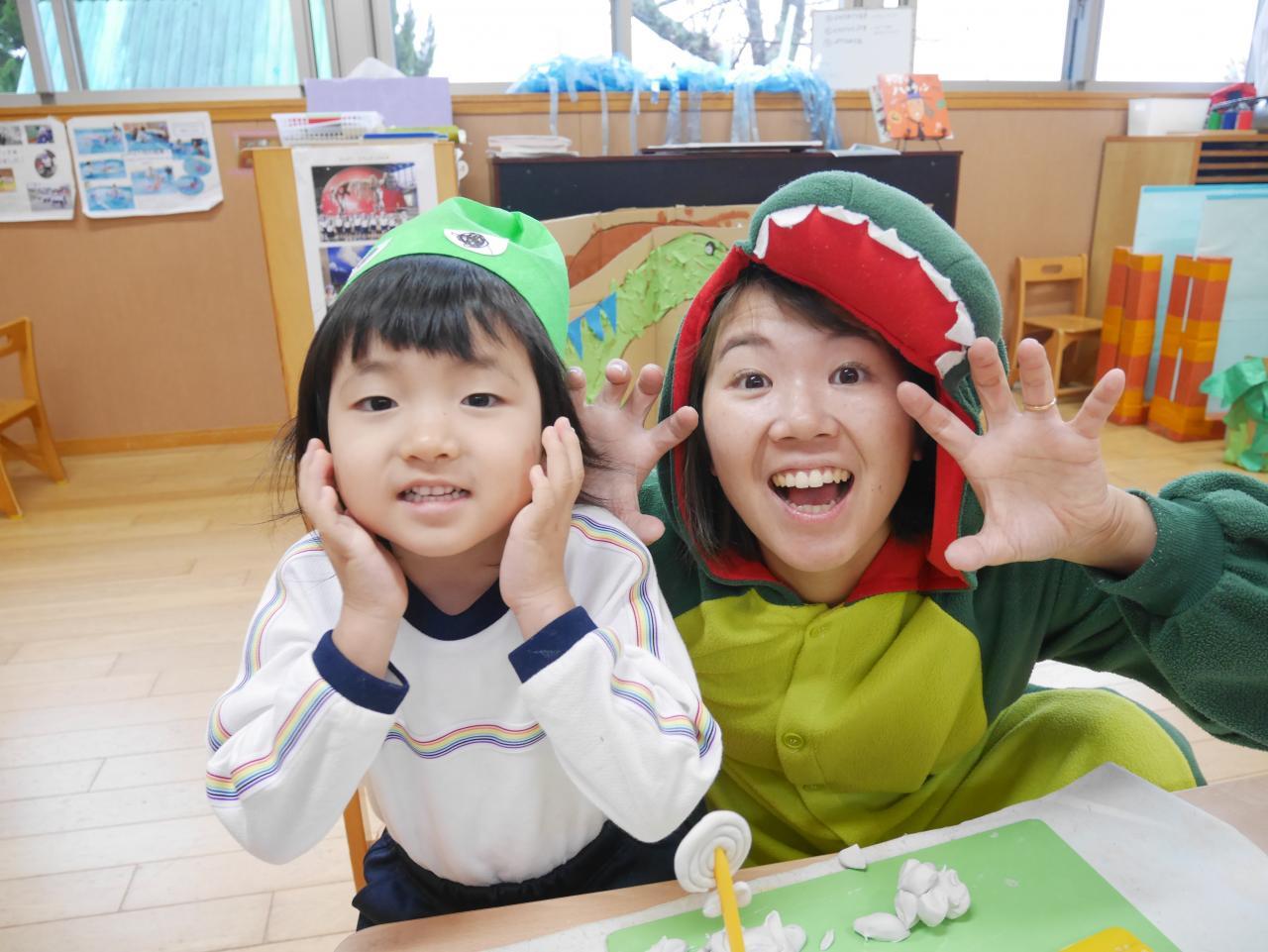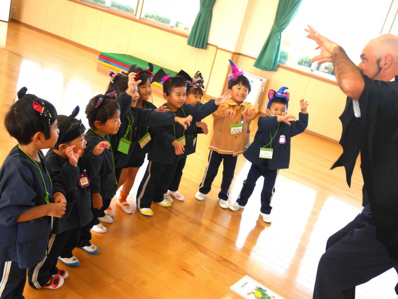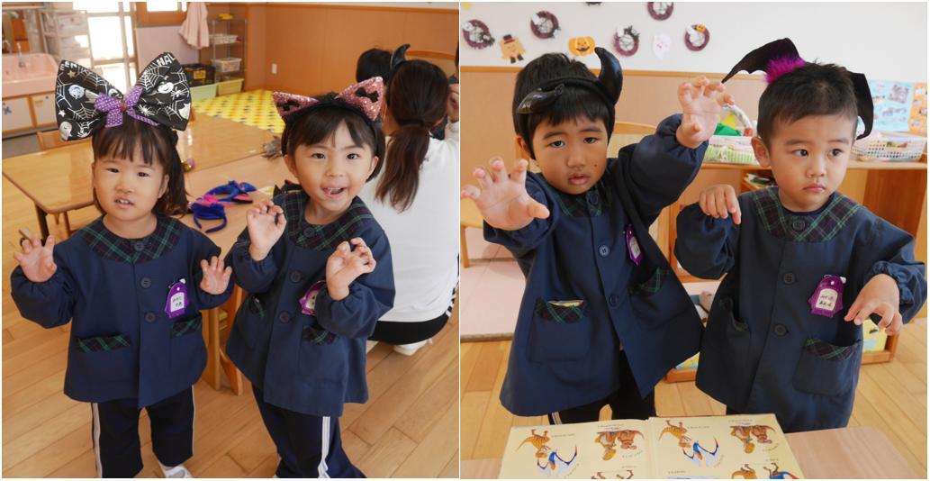 「先週は行事が盛りだくさん✨ ハロウィンにちなんで、英語教室ではハロウィンパーティー✨ ドラキュラに変装したリノ先生が出てきてびっくり! ハロウィンのおばけになりきって遊んだり、ハロウィンの絵本を読んでもらったりして、ハロウィンという行事について興味が深まった楽しい時間でした☺
