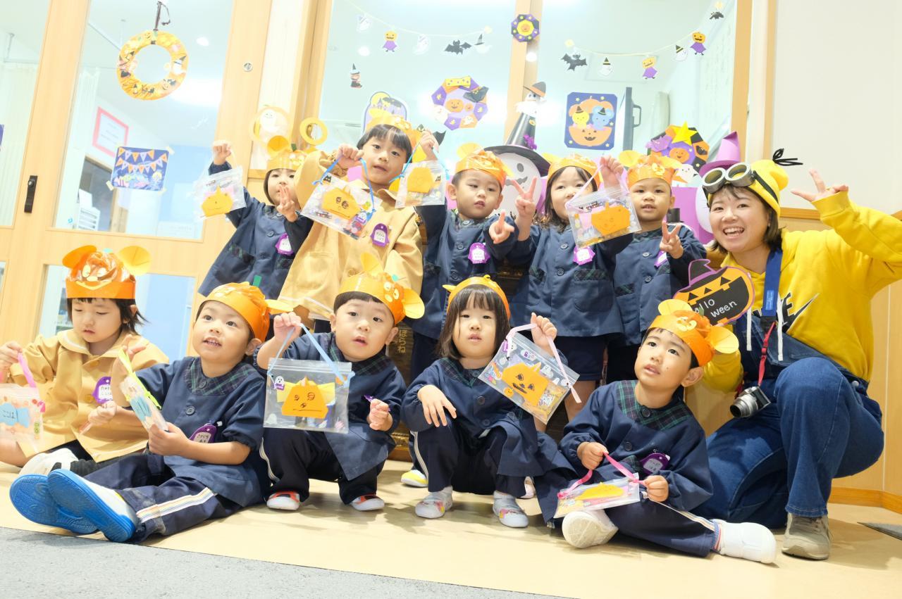 当日31日は、朝から“ナツオン”を見て大喜びしてくれたかわいいゆり組さん🍌👓 ジャックオーランタン運びゲームをしたり、職員室にトリックオアトリートしに行っておかしをもらったり、宝探しゲームをしたりして、ハロウィンに親しんだ1週間でした💕 おうちでも楽しまれましたか❓」・・・ゆり組より