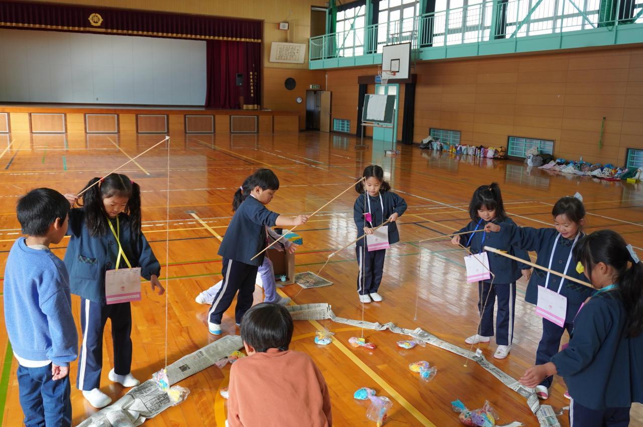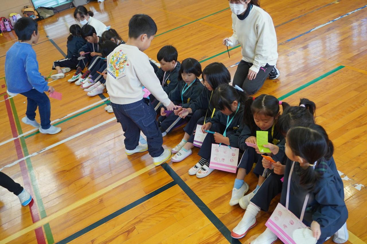 12月4日木曜日にさくら🌸組が南小学校に行きました。1年生のみんなが、河高こども園と高岡育児園の5歳児クラスを「なかよしランド」に招待してくれたからです。1年生は、南小の楽しいところを紹介してくれたり、6つのお店を開いて楽しませてくれたりしました。司会・進行やいろんな発表やお店でのお世話の様子から、入学してからの成長ぶりに感動しました。そのやさしさとかしこさで思いっきり楽しませてもらった星っ子さくら組は、早く入学したいと思ったに違いありません。南小学校とは違う小学校に入学する子もいますが、きっと、1年生はやさしい、小学校は楽しいと感じたことでしょう。これから、ときどき南小学校の運動場に遊びに行きたいと思います。