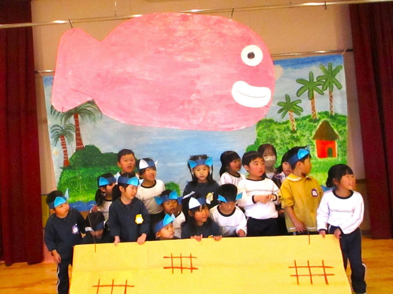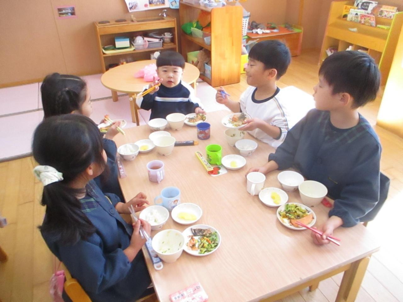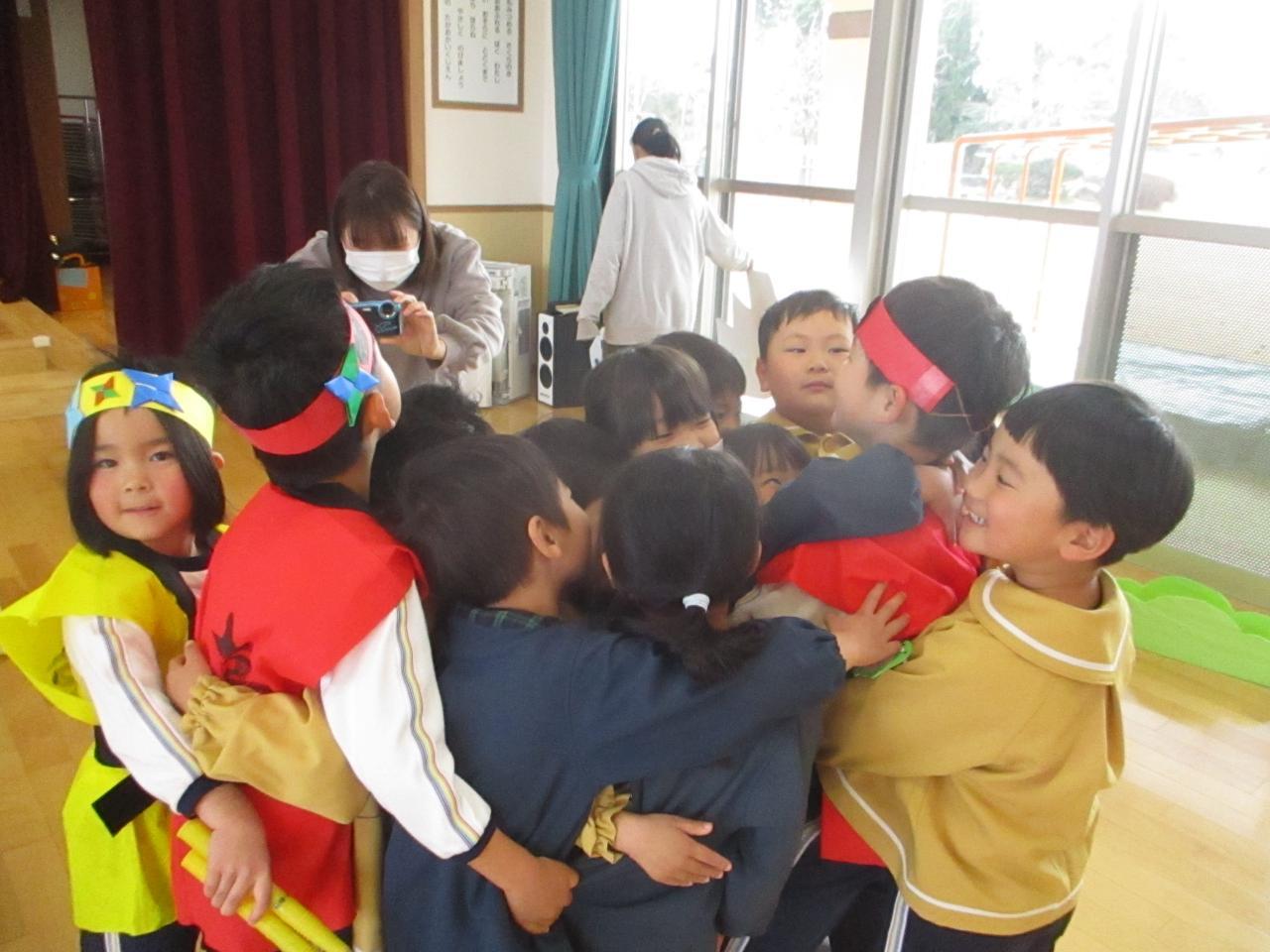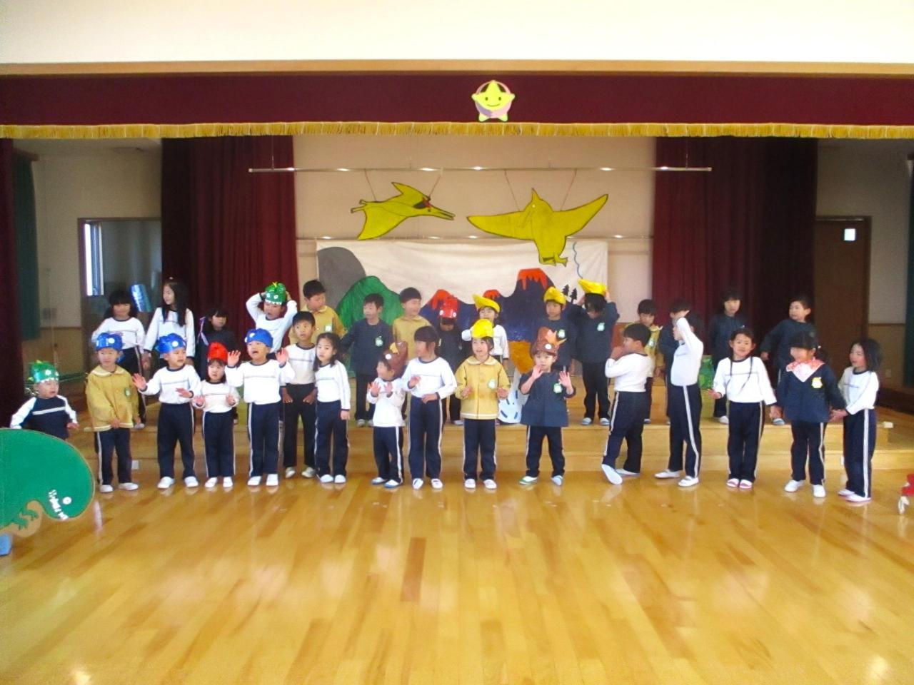 「生活発表会を通して、「役になり切ること」「お友達と一緒に表現すること」がさらに好きになった子ども達☺ 今度はお互いの劇に参加し合って、別の世界観を楽しんでいます。3~5歳児で一緒に「迷子のたまご」のお父さん・お母さん恐竜を探したり、ネコとあほうどりになってコロッケを味わったり、好きな忍者になって修行したり闘ったり・・・⭐「なかよしの術」でもーっと仲良しになったので、一緒に給食も食べましたよ💛 一緒に演じる中で新しいセリフや表現も生まれていて、わくわくがどんどん膨らんでいます!」・・・さくら、ひまわり、ゆり組より