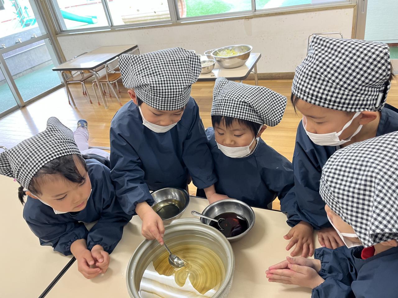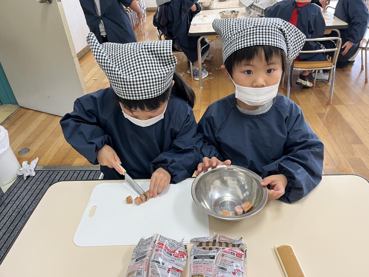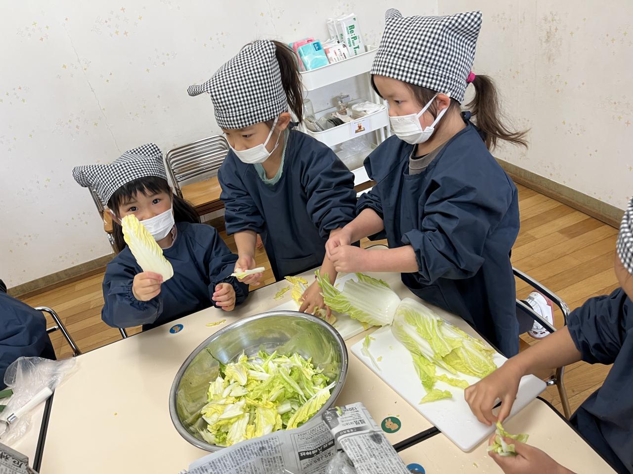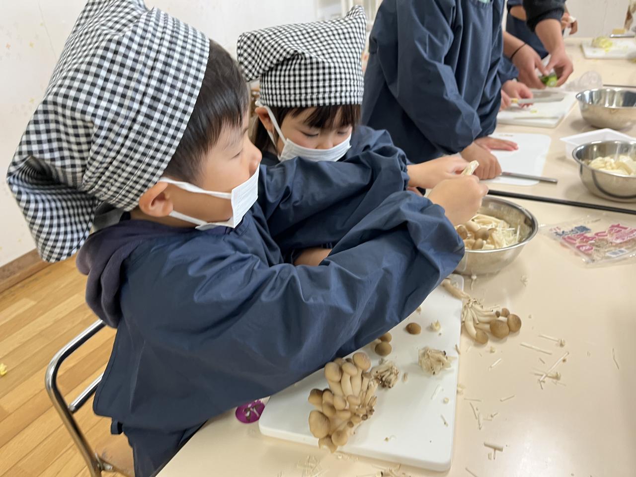 食材を渡すと、自分たちで考えながら、切ったり、ちぎったりと作り進めていく姿がありました🥰