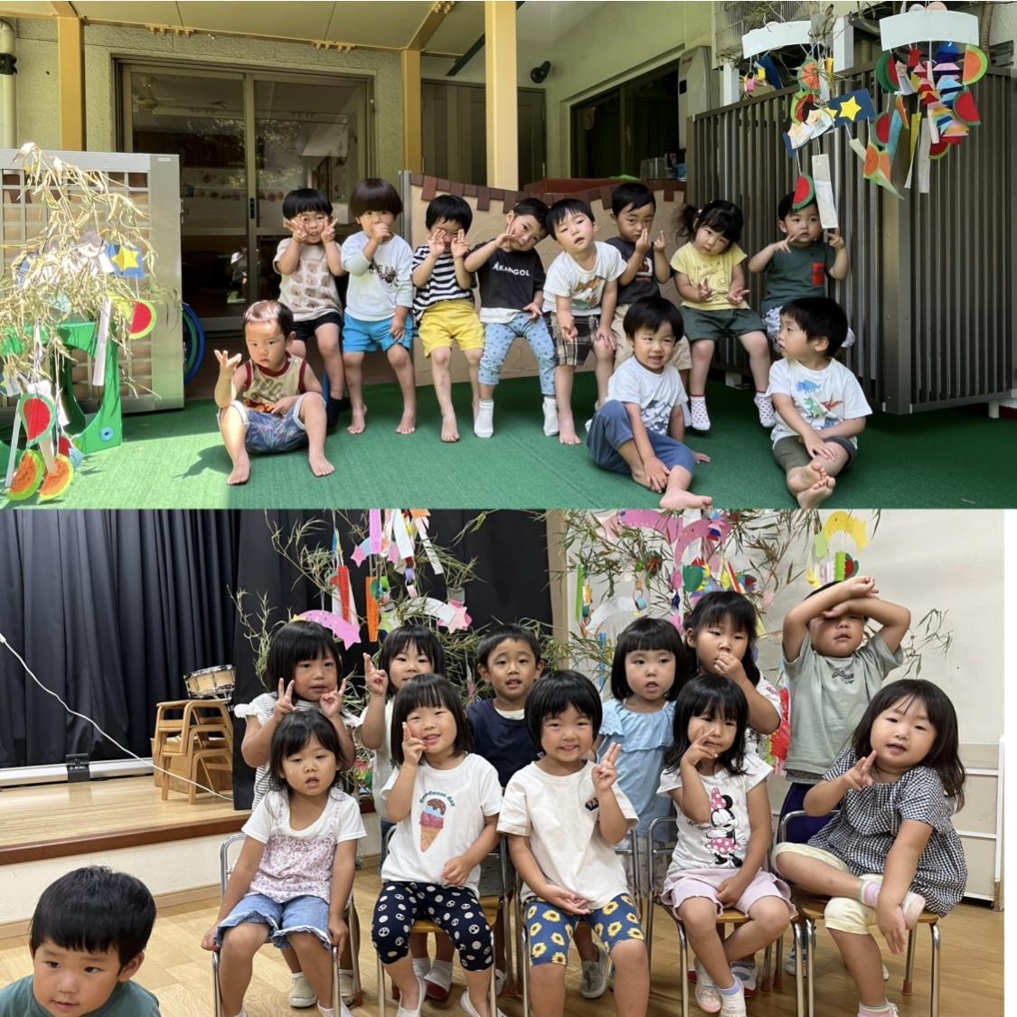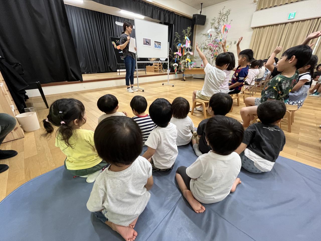 黄色名札(2歳児)さんと幼児クラスのお友達が、七夕集会に参加しました🎋✨