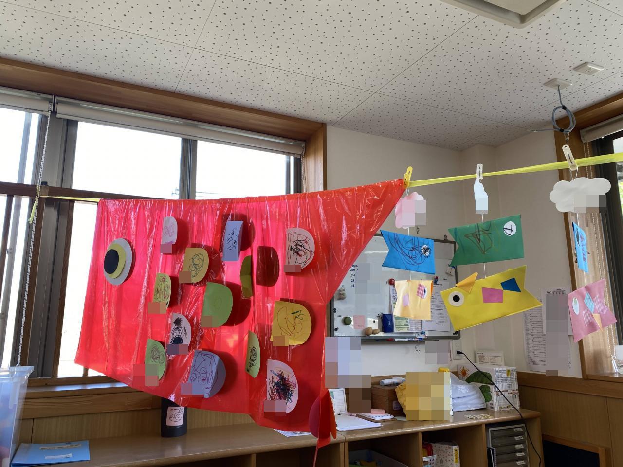 と、みんなの素敵なつぶやきも聞くことができました🥰たんぽぽ組のお部屋や廊下で、気持ちよさそうに泳いでいるこいのぼりさんです😌✨
