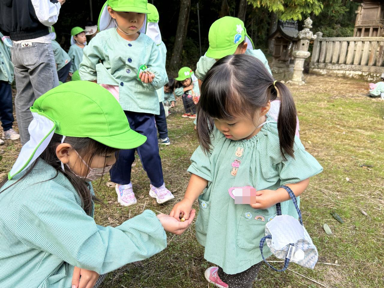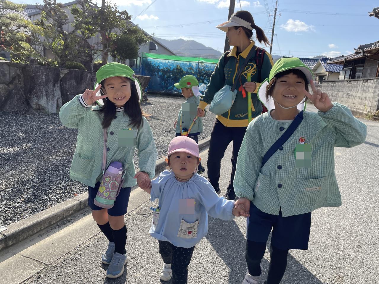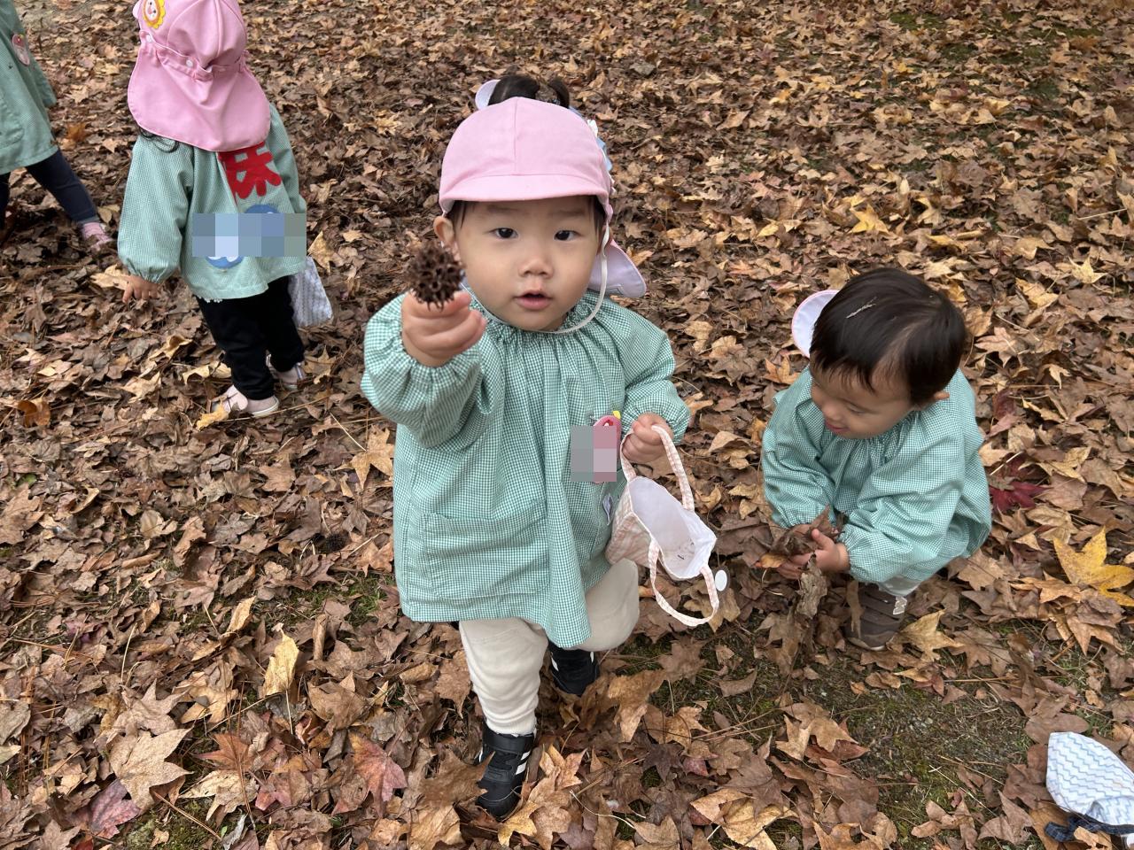 秋の散歩を満喫中のもも組です!最初は園周辺を歩いていましたが、いろんな場所へ行き、長距離も歩けるようになりました😭どんぐりや葉っぱを拾ったり、バッタやカマキリなどの生き物を見つけたり秋の自然に触れながら、散歩を楽しんでいます💕