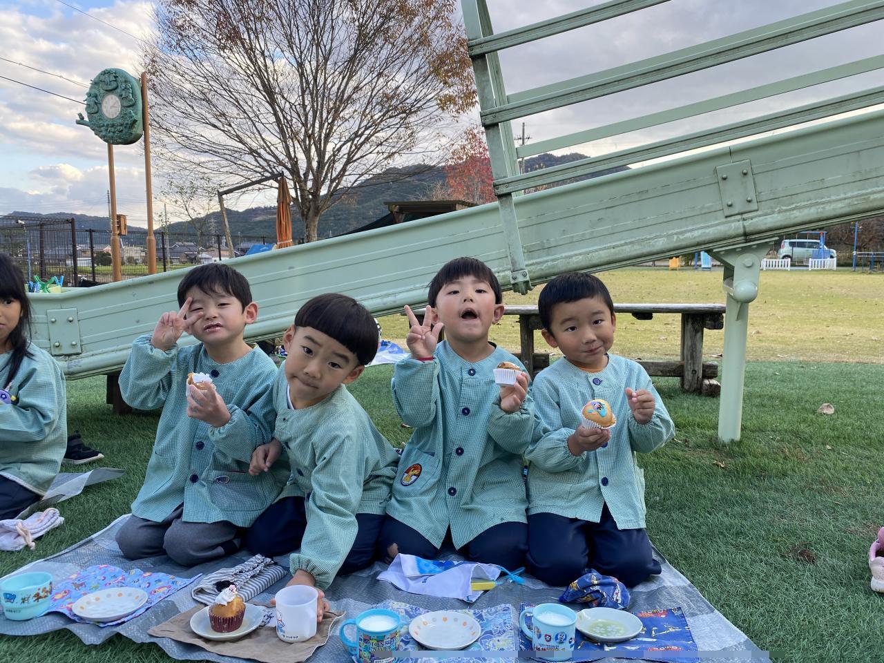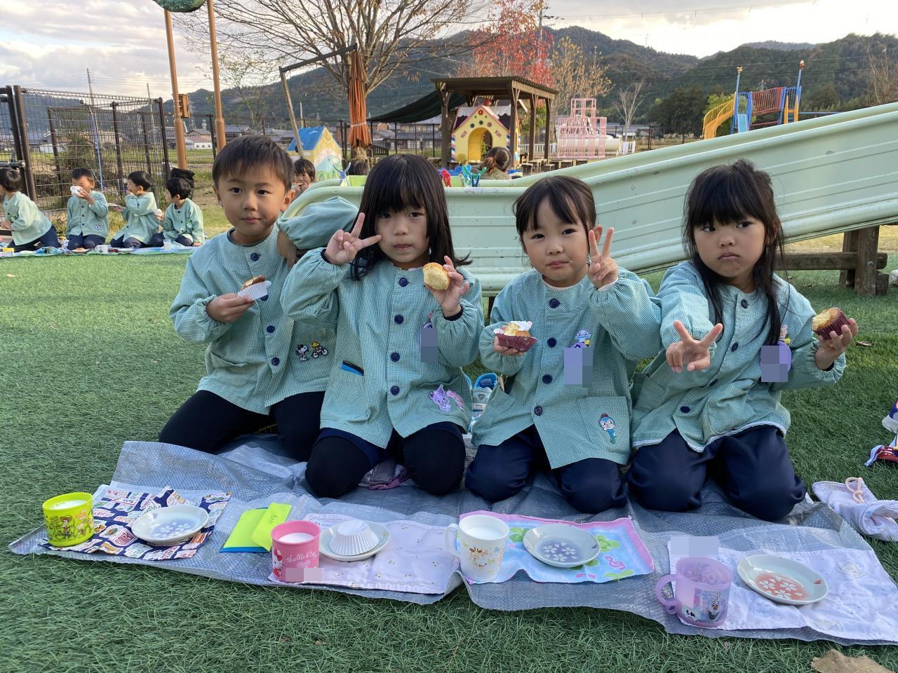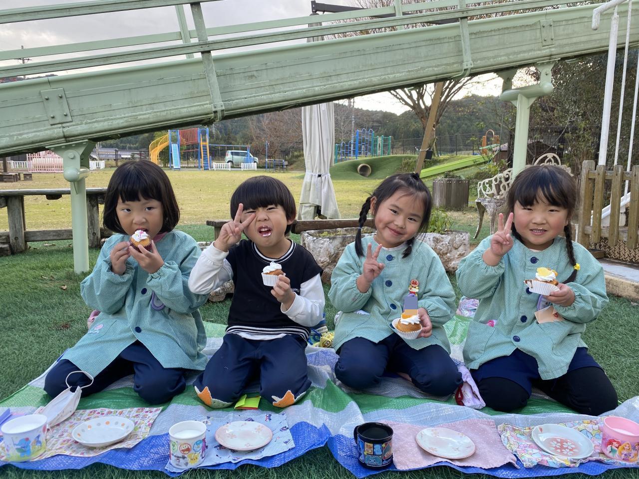 おやつの時には給食の先生のおやつやさんが開き、かわいいカップケーキに目がキラキラ✨✨