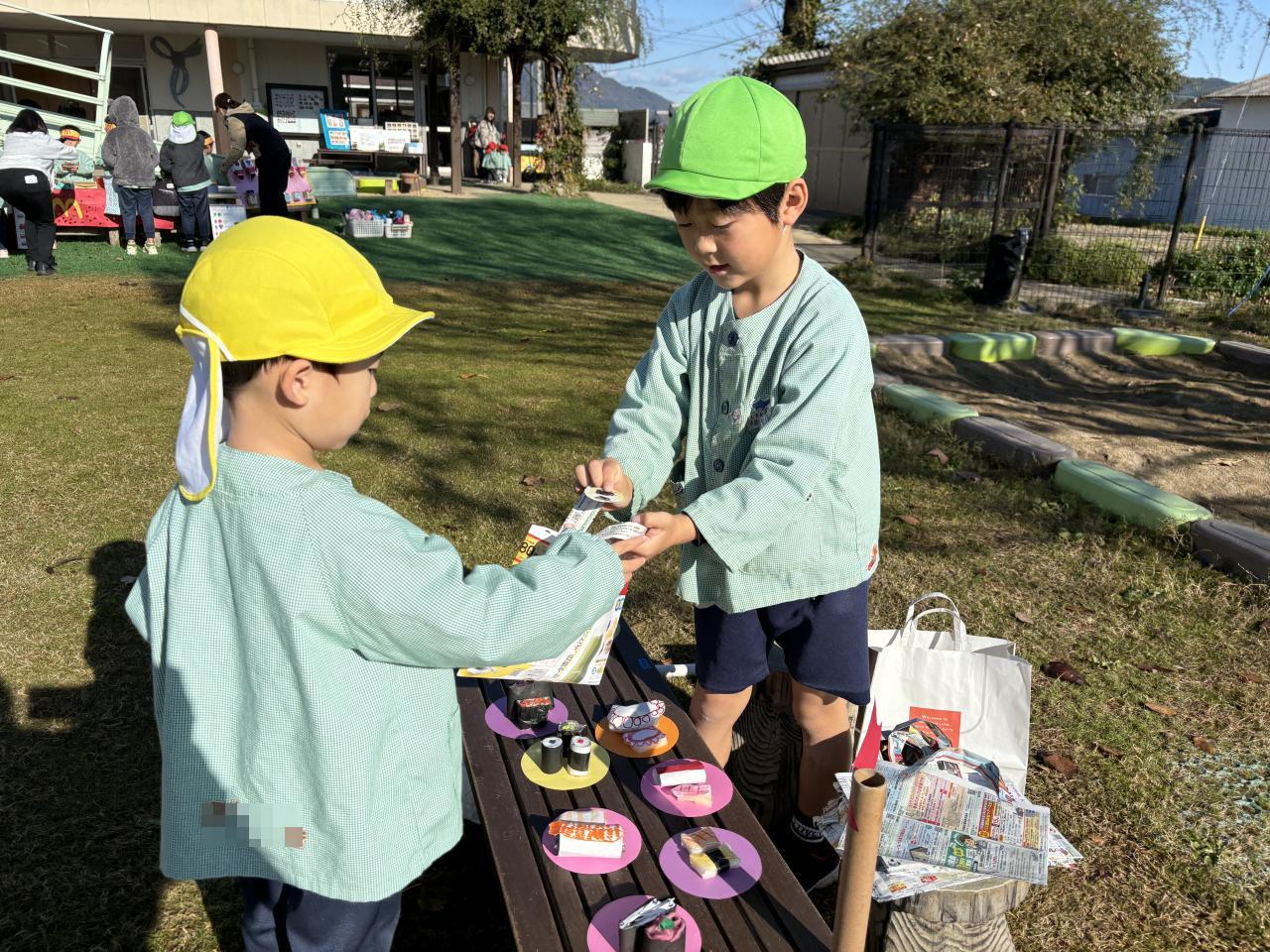木曜日はお店屋さんごっこでした。朝から「お金ちゃんとあるかな~?」と、しっかり確認をして楽しみにしている子ども達😄早く始まらないかとワクワクウキウキで、テンションも高めでしたよ(笑)