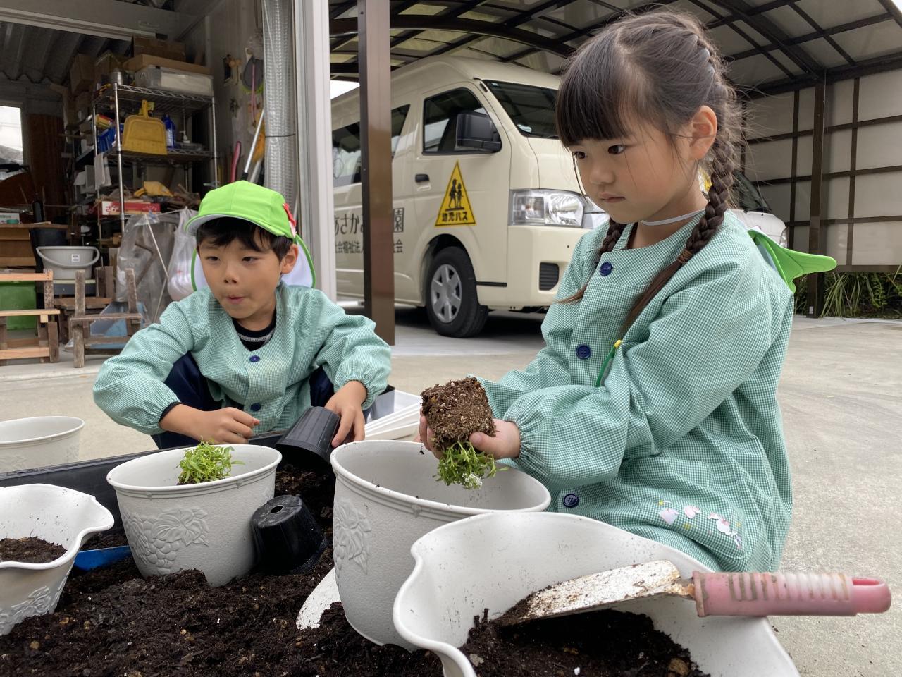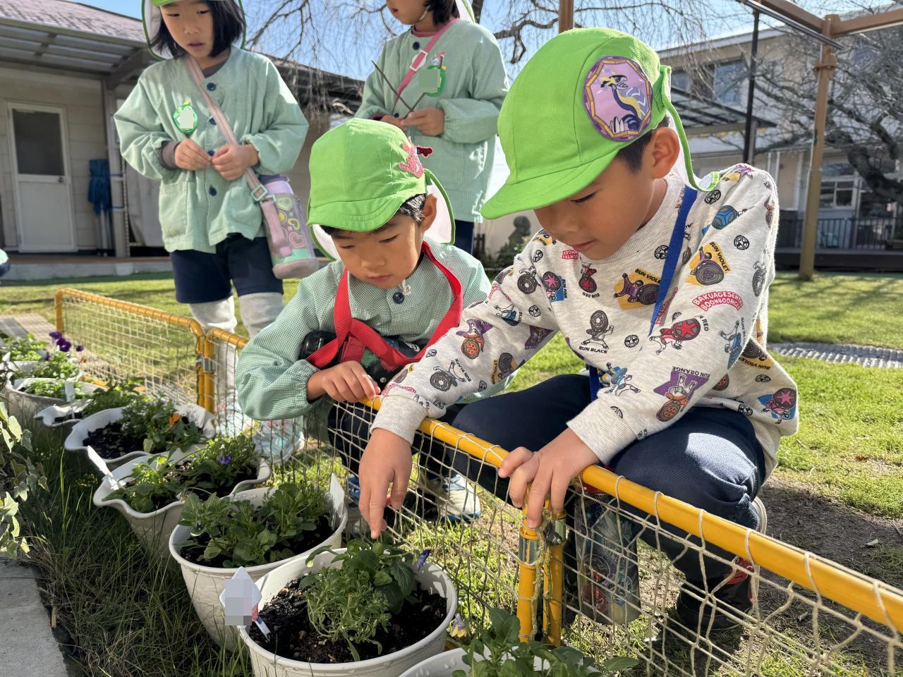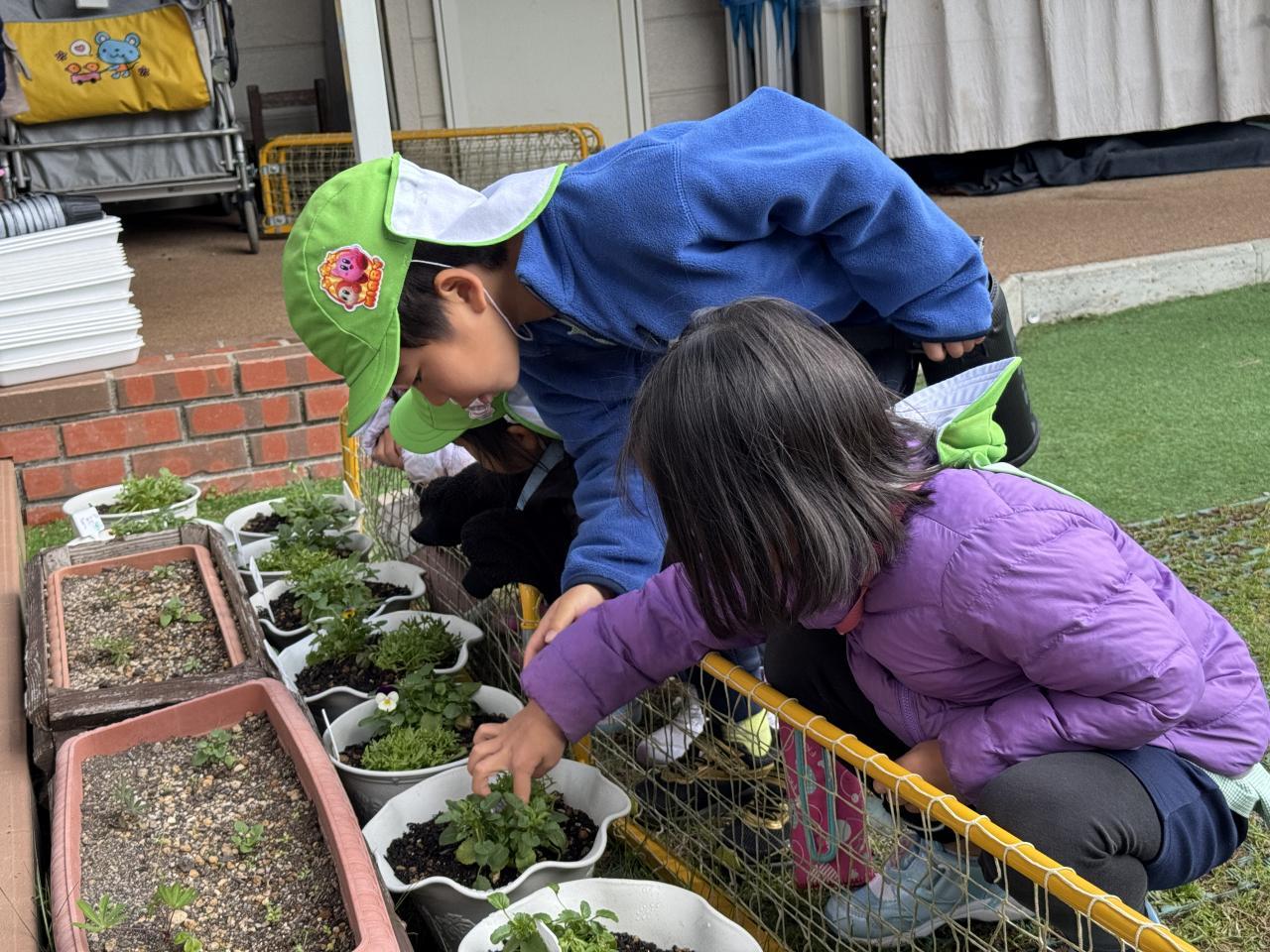 先日、卒園式の時に持って帰る鉢の寄せ植えをしました🌼一人一人とても丁寧に苗と球根を植え、自分のものと分かるようにネームプレートも描き、水やりをして大切に育てています。