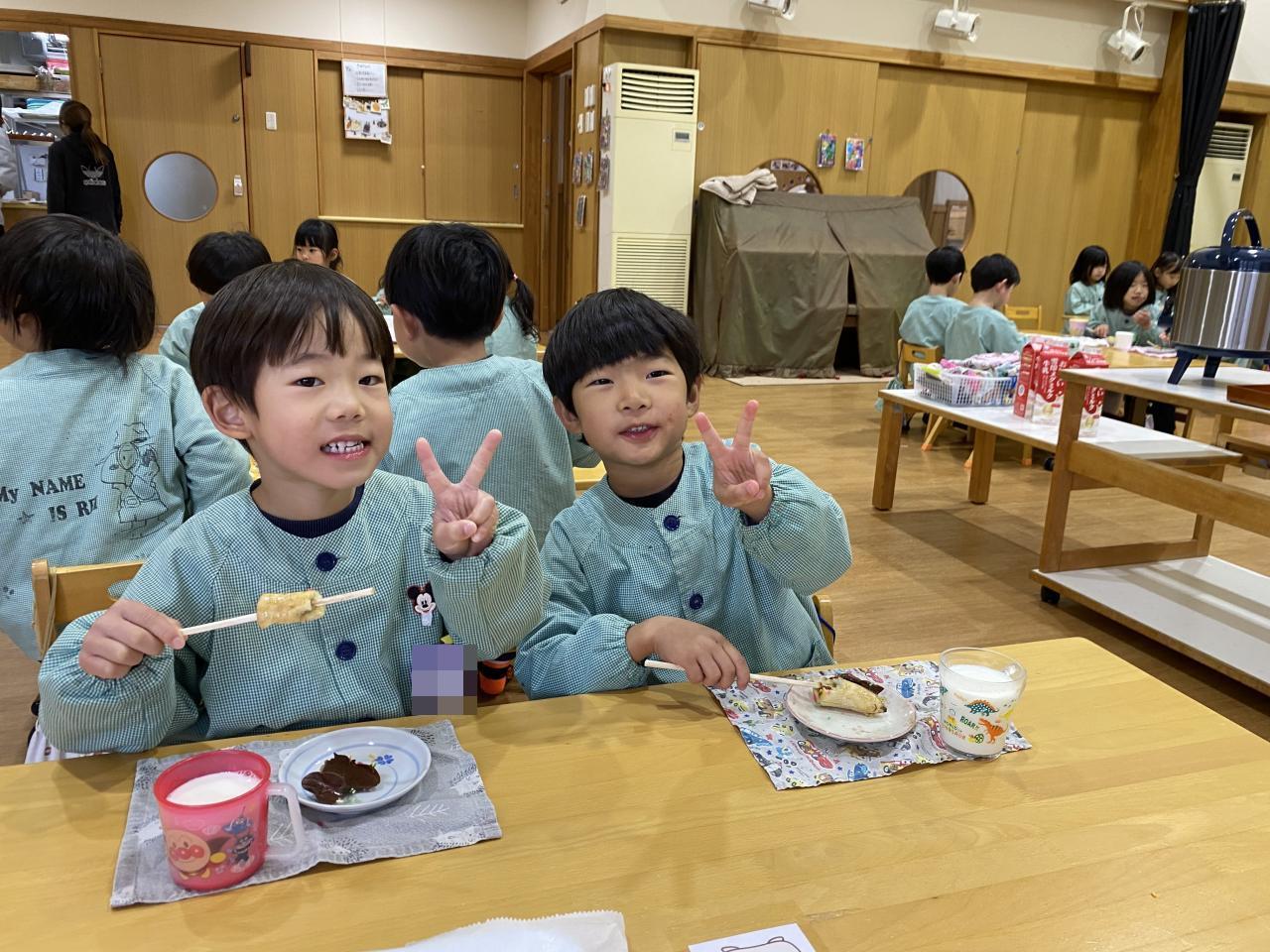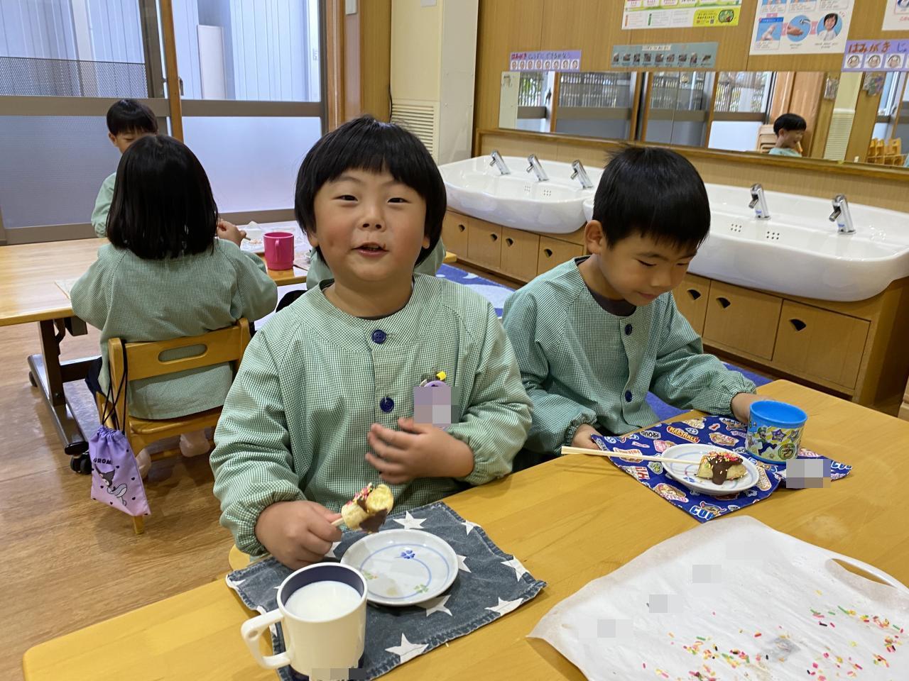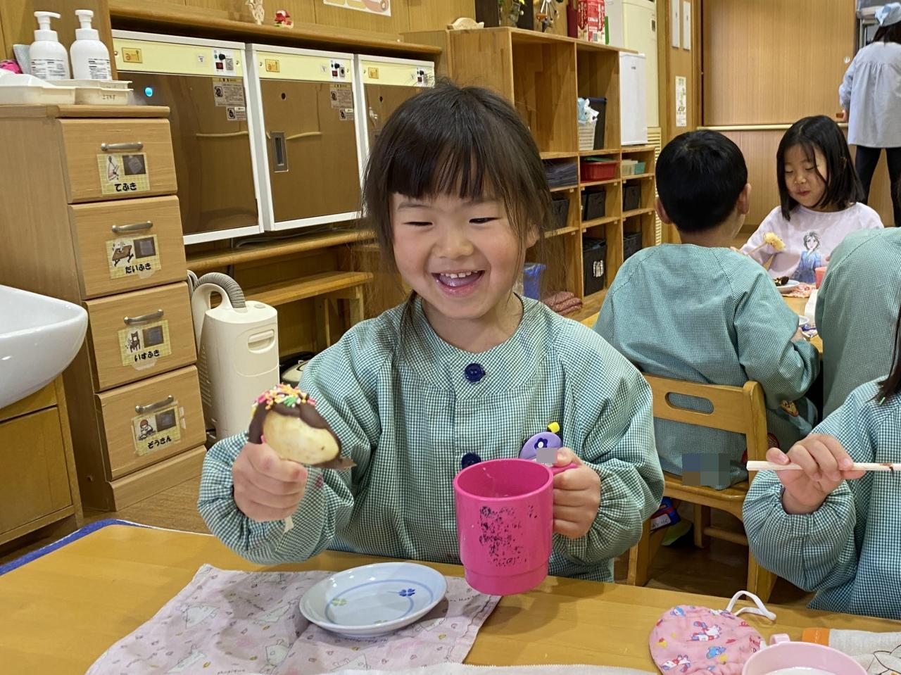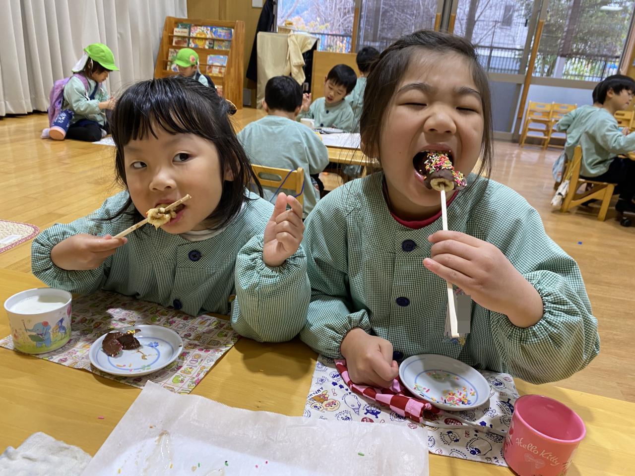 みんなが給食、お昼寝をしている間に給食の先生にチョコバナナを冷やしていただきました😄