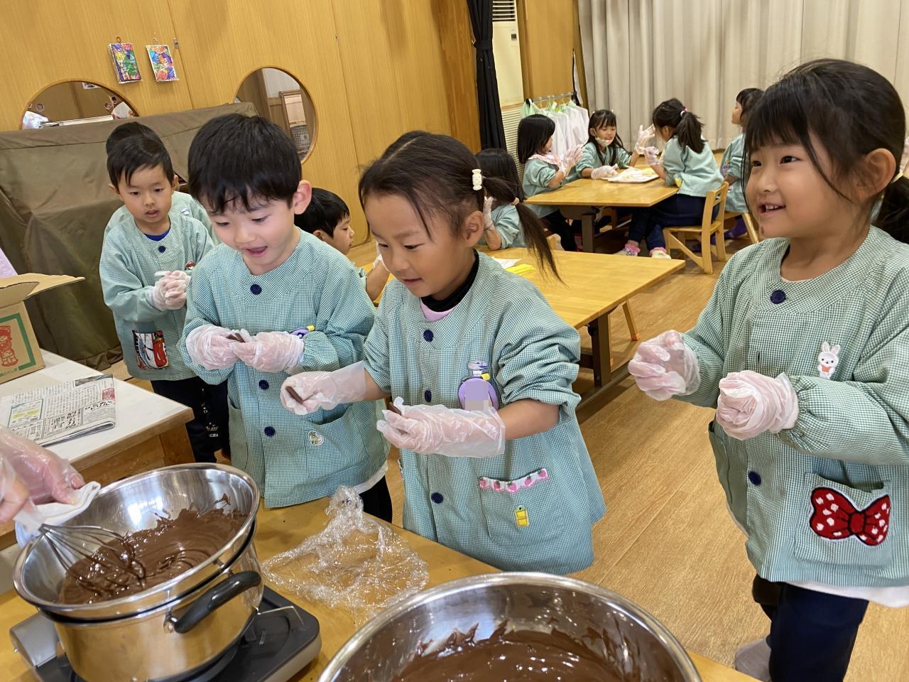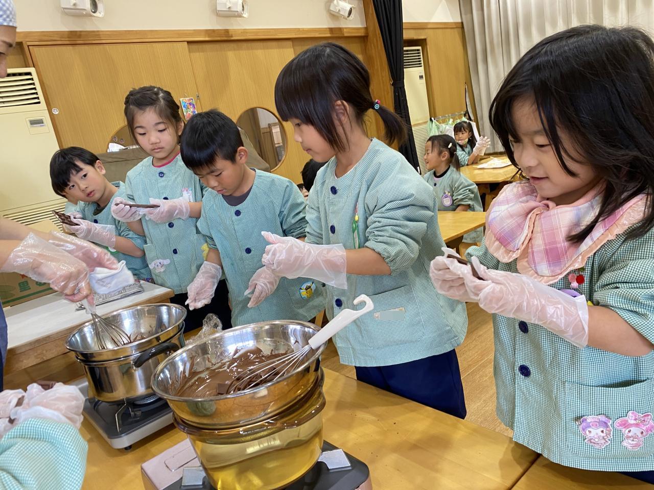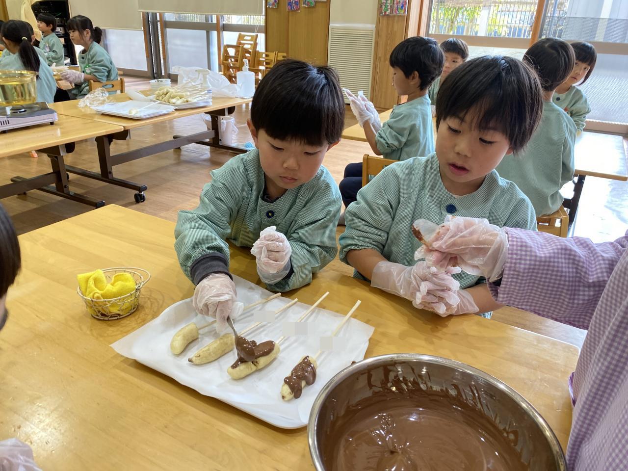 みんなと何がいいか考え、ゆり組さんと一緒に「チョコバナナ」を作ることに決定!