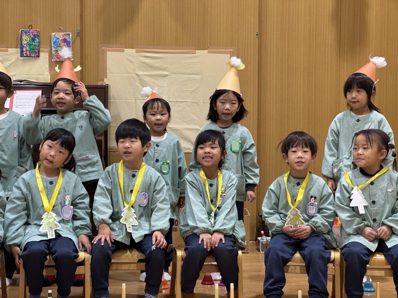 2チームに分かれての合奏は、初めてお互いの演奏を聞きましたが、どちらもとっても楽しく可愛く合奏してくれました。ゆり組は練習の間からそれぞれの楽器のパートリーダーとして、頑張ってくれていましたよ😆