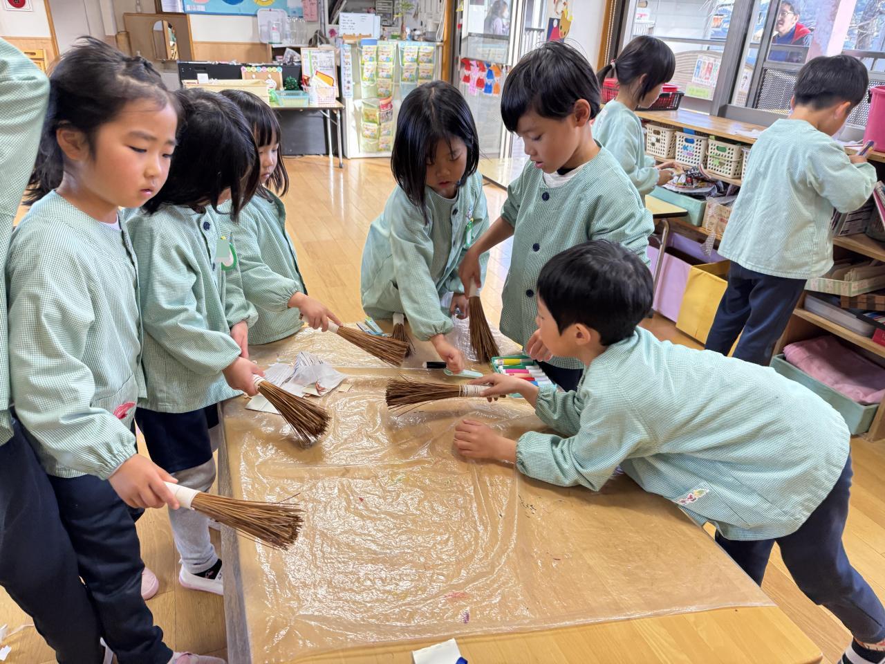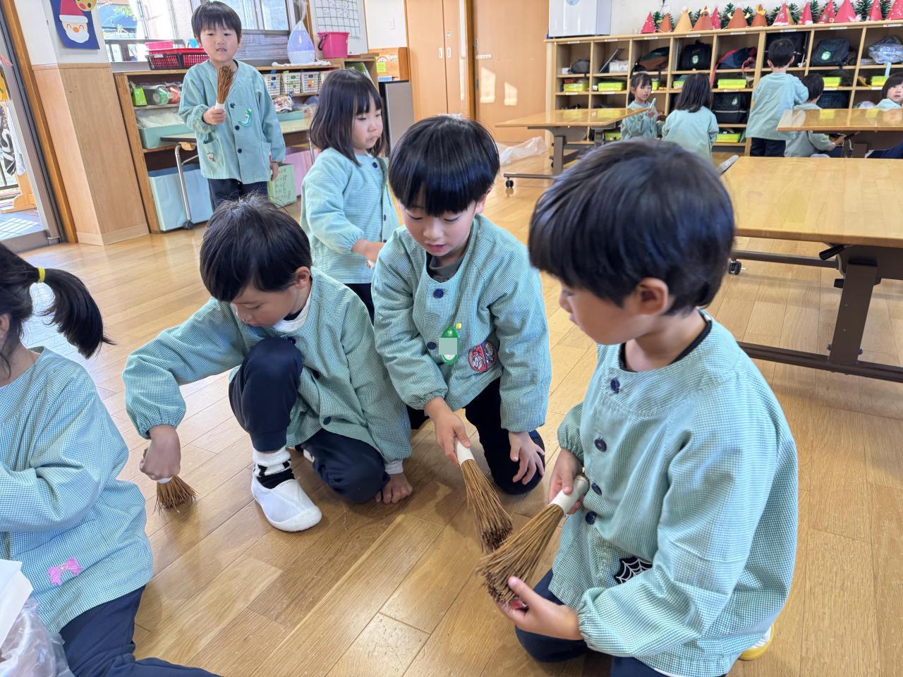 ゆり組のお家の方が、糀屋公園にある赤松の松葉で箒を手作りして、ゆり組の子ども達一人に一つずつくださいました😄