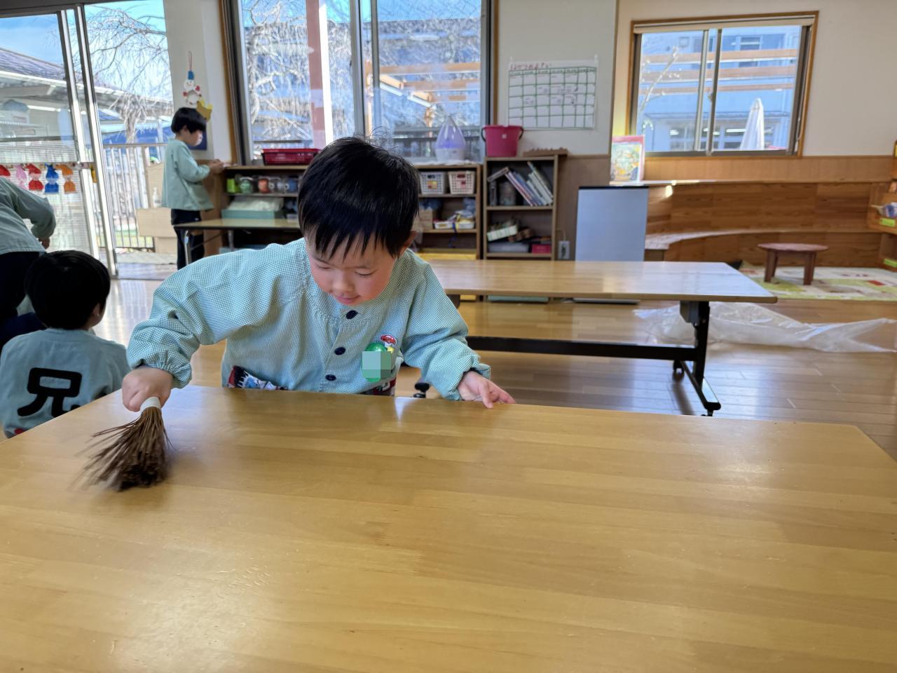 箒は自分の棚に片付けて、いつでも使えるようにしています。お掃除がとっても上手になってきています✨年末の大掃除は、ぜひ、お手伝いしてもらってください😆
