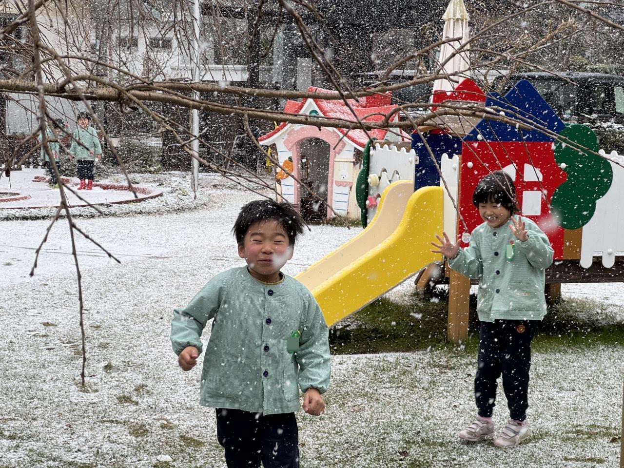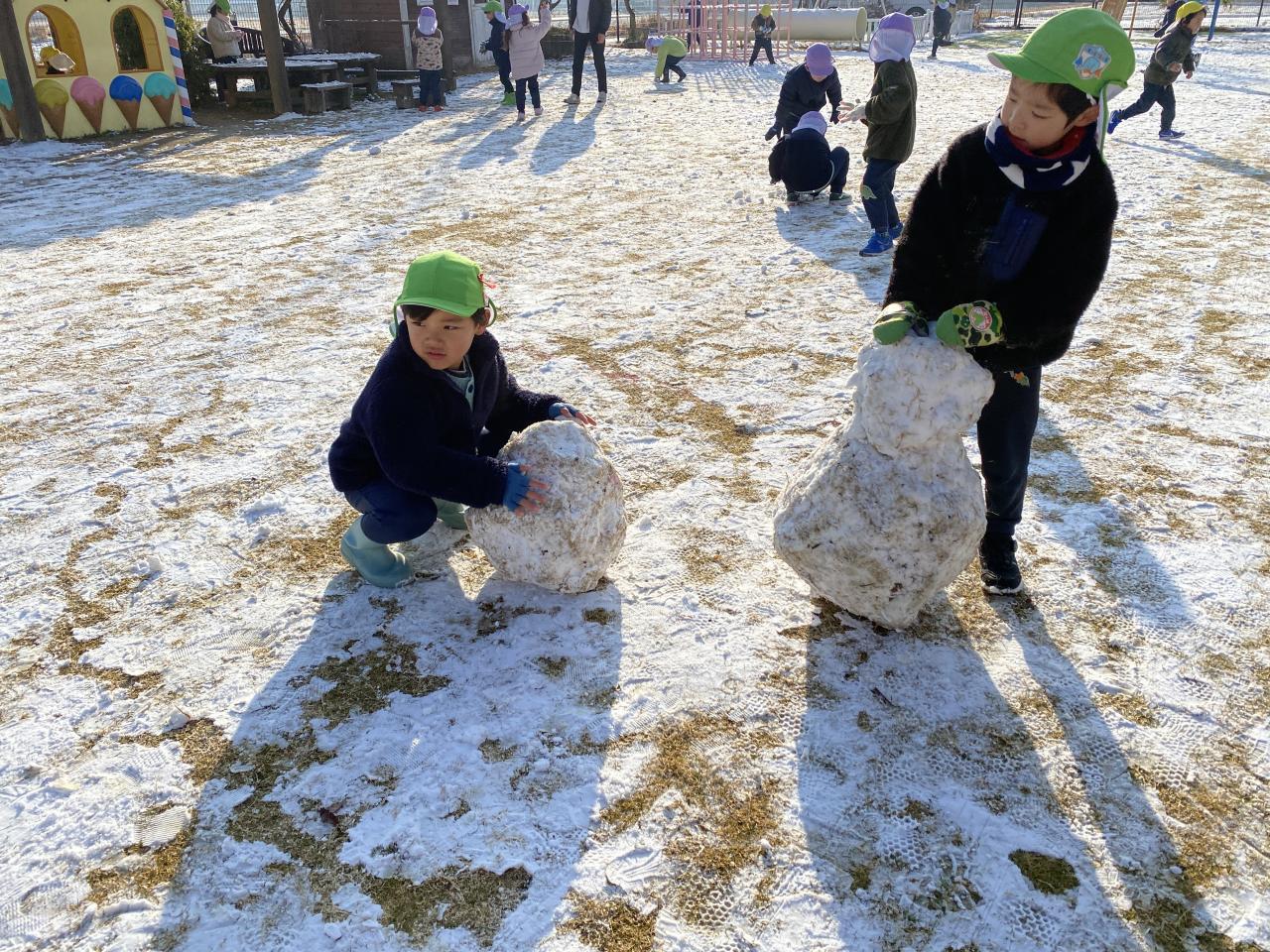 かなり寒い日が続いた今週、やっと雪が積もり、雪合戦や雪だるまづくりを楽しむことができました⛄