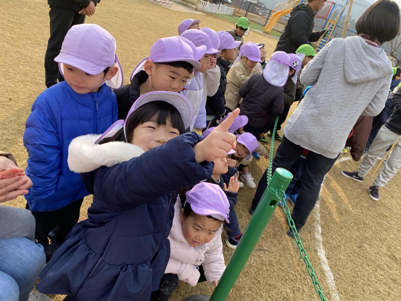 煙をあびるとかしこくなるよ、と園長先生がおっしゃっていたので「けむりさんこっちきて~!」と手で煙をあおぎました😄