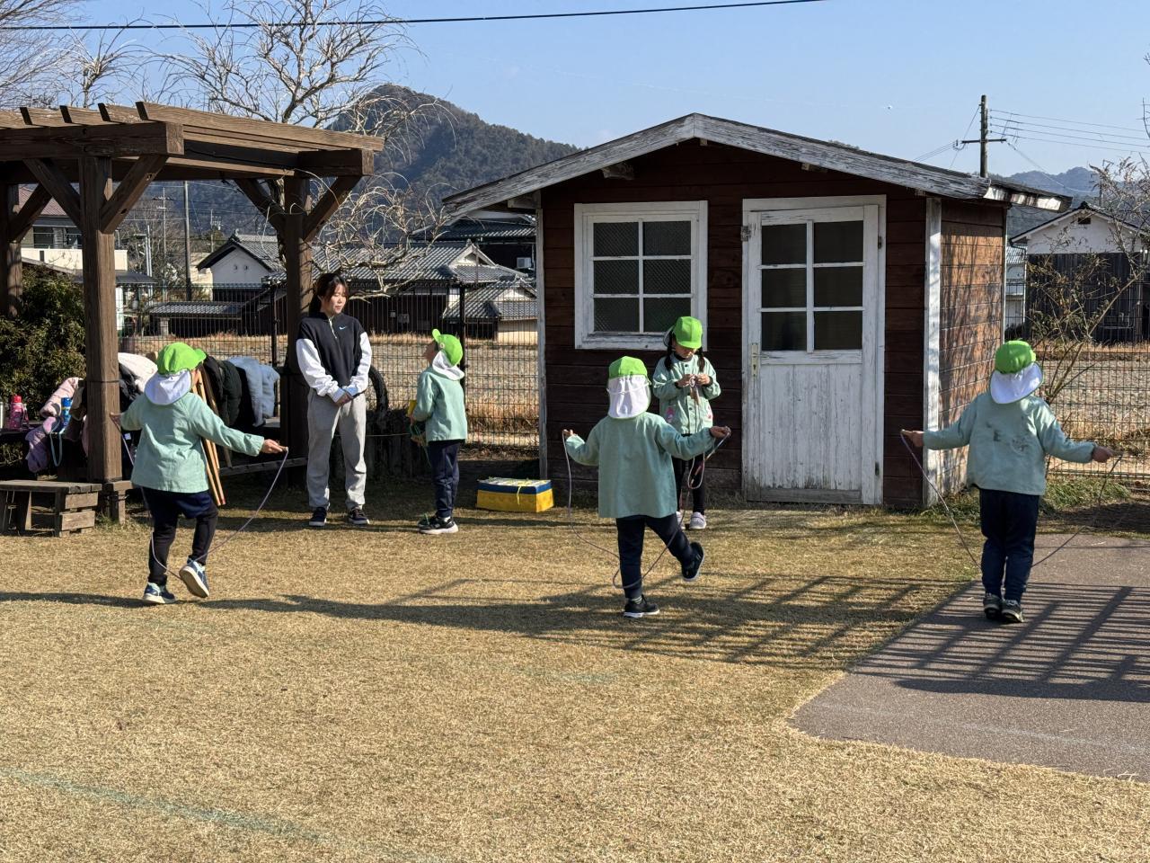 跳んでも跳んでもなかなかできない・・・。何日たってもできない・・・。寒いのに汗をブルブルかきながら跳んでいる子・・・。あの子が追い付いてきた、ヤバい・・・。など、様々な子ども達の様子がありましたが、その中でも、毎日練習したり、家で特訓をしたりして、できるようになった時の子ども達の達成感に満ちた表情は本当に素敵です💕友だちの成功を自分のことのように喜んでくれる友達や先生💕努力は裏切らないという姿をたくさん見せてもらいました🥰